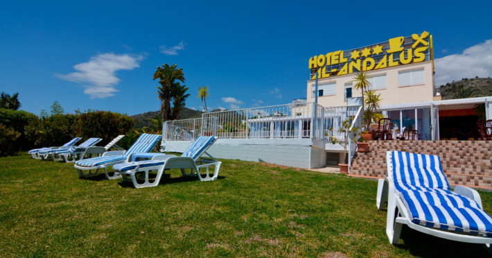 Nearest airport: GRX. The hotel Al-Andalus is situated 200m from the Caves of Nerja and 5 minutes from the picturesque village of Nerja. Nerja is the place of the Costa del Sol with the many services a first rank tourist resort needs. mountains. The Hotel is situated between the natural areas of the Sierra Almijara and the cliffs of Maro with panoramic views of the sea and mountains. There is a restaurante, Bar-Cafe, green area, swimming pool and parking. 32 rooms with balcony and complete bathroom with hairdryer, air conditioning, heating, telephone, satellite TV, large terrace with sea views.Nearest airport: GRX. The hotel Al-Andalus is situated 200m from the Caves of Nerja and 5 minutes from the picturesque village of Nerja. Nerja is the place of the Costa del Sol with the many services a first rank tourist resort needs. mountains. The Hotel is situated between the natural areas of the Sierra Almijara and the cliffs of Maro with panoramic views of the sea and mountains. There is a restaurante, Bar-Cafe, green area, swimming pool and parking. 32 rooms with balcony and complete bathroom with hairdryer, air conditioning, heating, telephone, satellite TV, large terrace with sea views.