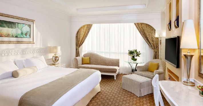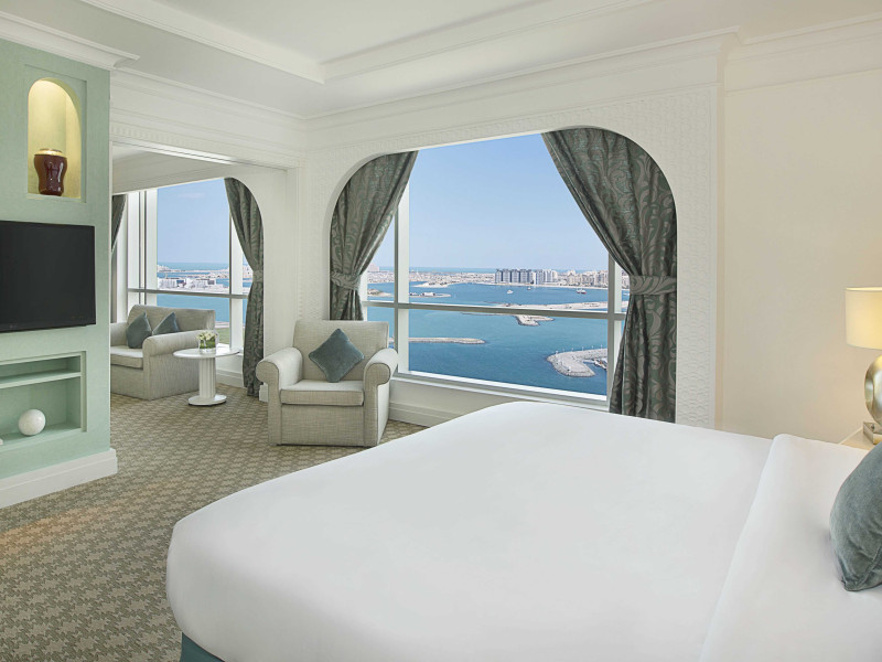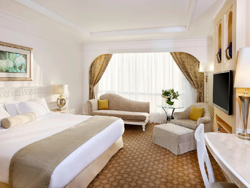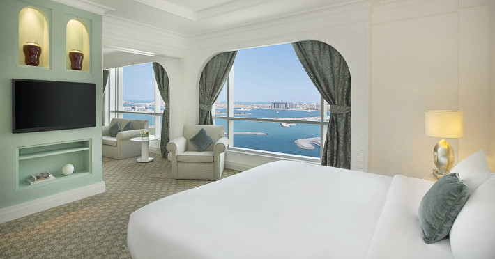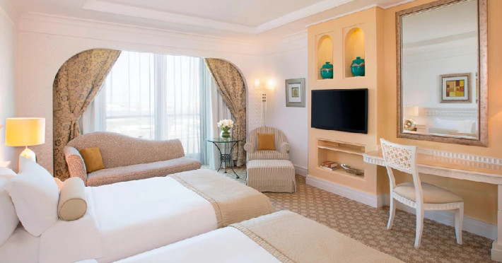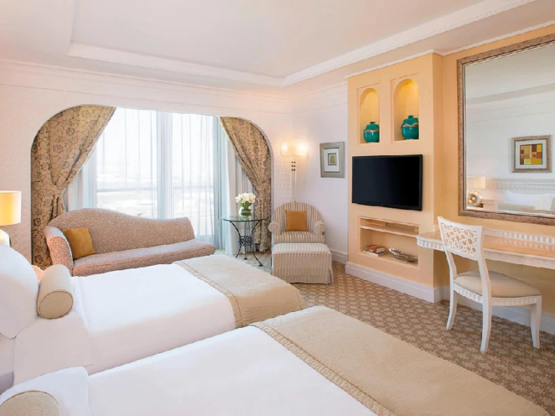 446 guest rooms and suites offer a generous variety of 5-star accommodation at the white shore of the Gulf. The majority of the spacious Tower Rooms have direct or partial sea view, while Garden Rooms enjoy the embrace of landscaped gardens. Club Rooms, Ambassador, Royal, Penthouse and Presidential Suites impress their guests with rich Arabic luxury and hospitality.