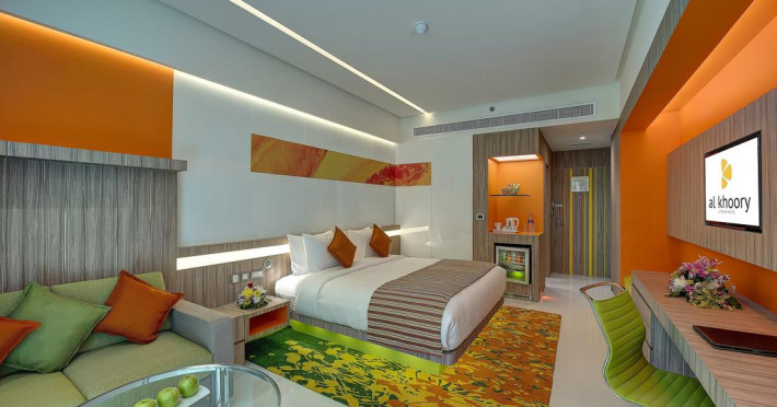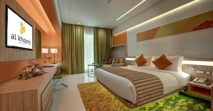 Fiecare cameră dispune de un aparat pentru preparare cafea sau ceai, cană-fierbător și minibar. Oaspeții pot solicita serviciul de room service pentru a servi masa sau diverse băuturi. În camere există baie cu cadă sau duș ce are în dotare foehn și articole de toaletă gratuite. Oaspeții au acces gratuit la serviciul Wi-fi în camere. Curățenia in cameră se face zilnic. Toate camerele spațioase de la Al Khoory Atrium Hotel au zonă de relaxare cu canapea, ceea ce oferă un plus de confort. Fiecare unitate de cazare are frigider. De asemenea, este disponibilă o zonă de luat masa. Proprietatea oferă camere pentru familie cu o suprafață mai mare și un număr mai mare de paturi față de cele standard. Se pot rezerva de asemenea camere pentru nefumători.