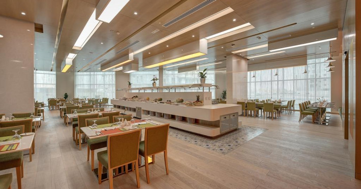 La Al Khoory Atrium Hotel oaspeții au la dispoziție 2 restaurante unde pot savura mâncăruri delicioase, în stil bufet sau à la carte. Preparate din bucătăria internațională și italiană sunt oferite zilnic la micul dejun, prânz și cină. Masa poate fi servită atât în interior, cît si în aer liber, pe terasă, în funcție de vreme. În cadrul proprietății există și o cafenea ideală pentru o gustare rapidă. Pentru cei cu anumite nevoi de nutriție, Al Khoory Atrium Hotel oferă meniuri pentru diete speciale.