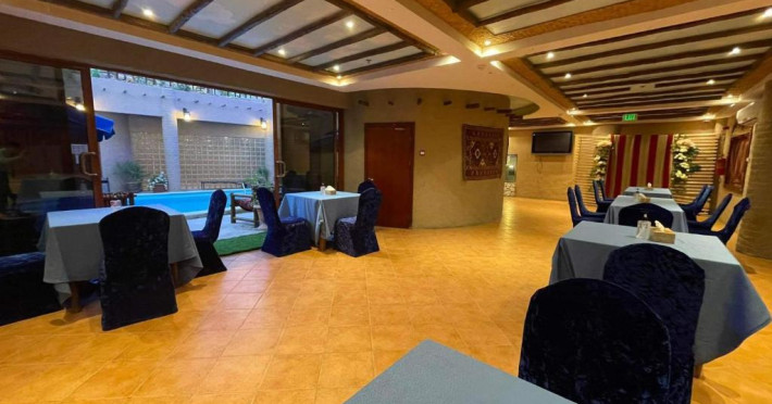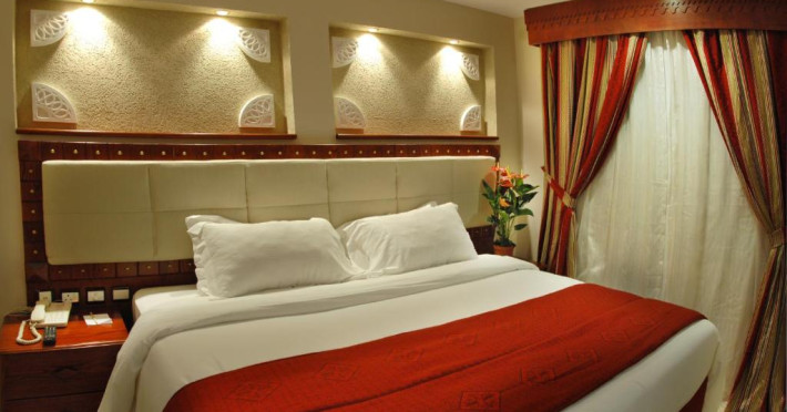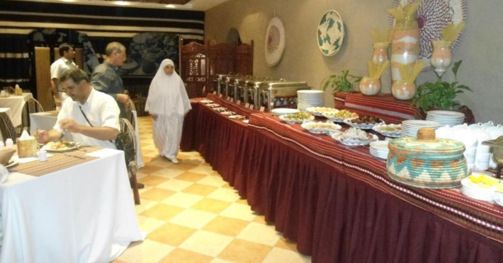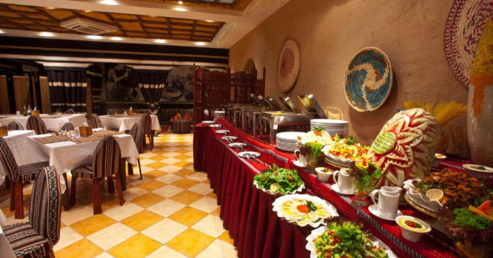 Restaurantul Al Liwan servește preparate din bucătăria orientală și internațională. Cafeneaua de langă piscină oferă gustări, băuturi orientale și internaționale și răcoritoare. Este disponibil și room service.