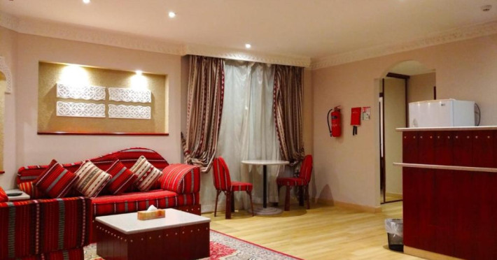 Suitele cu aer condiționat de la Al Liwan sunt decorate in culori calde și mobilier din lemn. Toate suitele au o cameră de zi spațioasă cu smart TV, o chicinetă cu cuptor cu microunde și o baie.