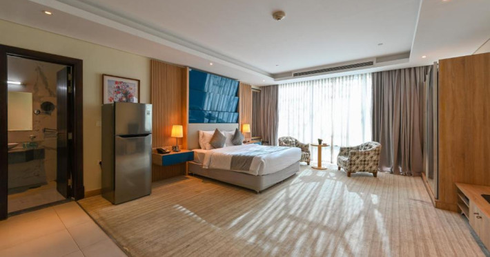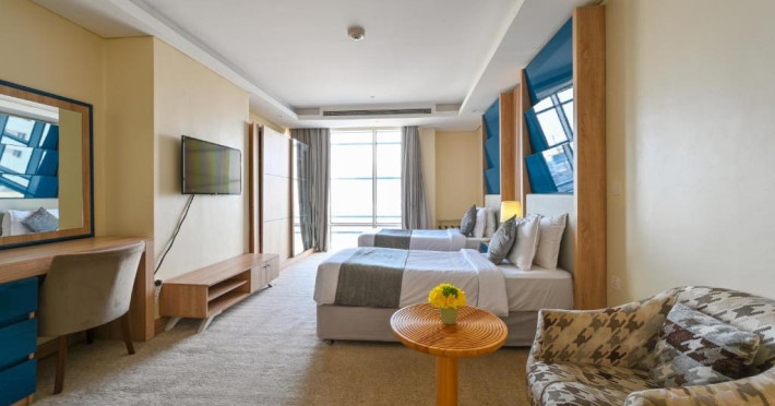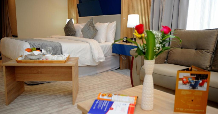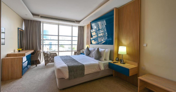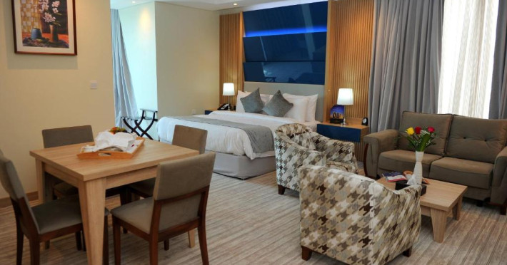Al Mansour Suites Hotel găzduiește un restaurant care servește mancăruri din bucătăria africană, americană și locală. La cerere, oaspeții pot beneficia și de preparat vegetariene și halal.