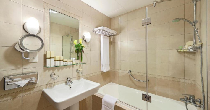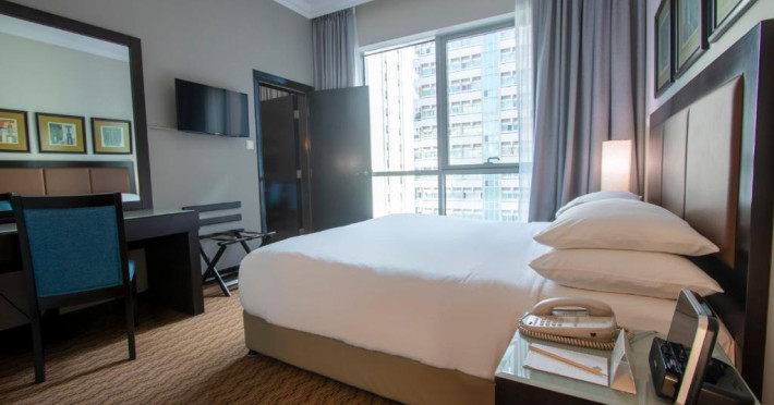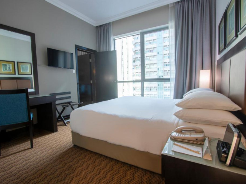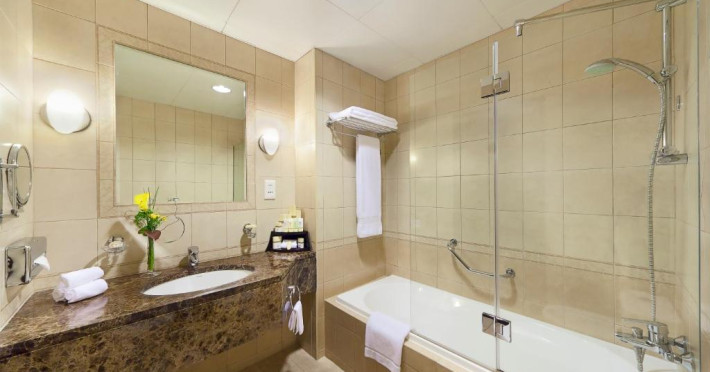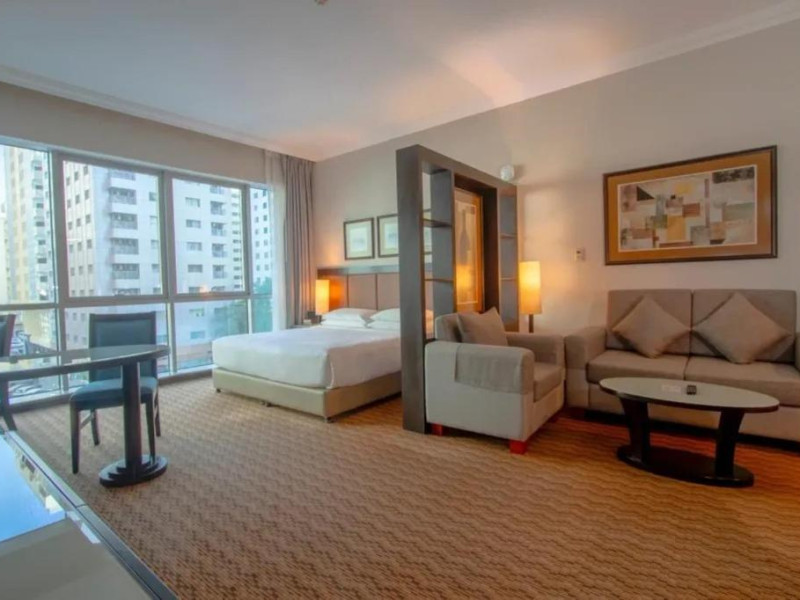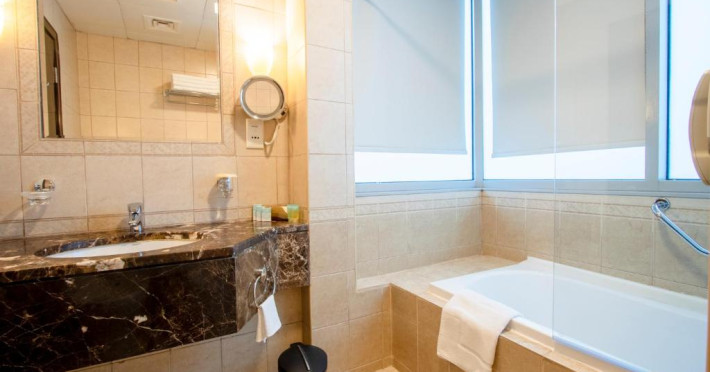 Acest hotel luxos, situat in centrul districtului comercial din Abu Dhabi, are un club de sănătate cu piscină pe acoperiș și saună.