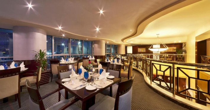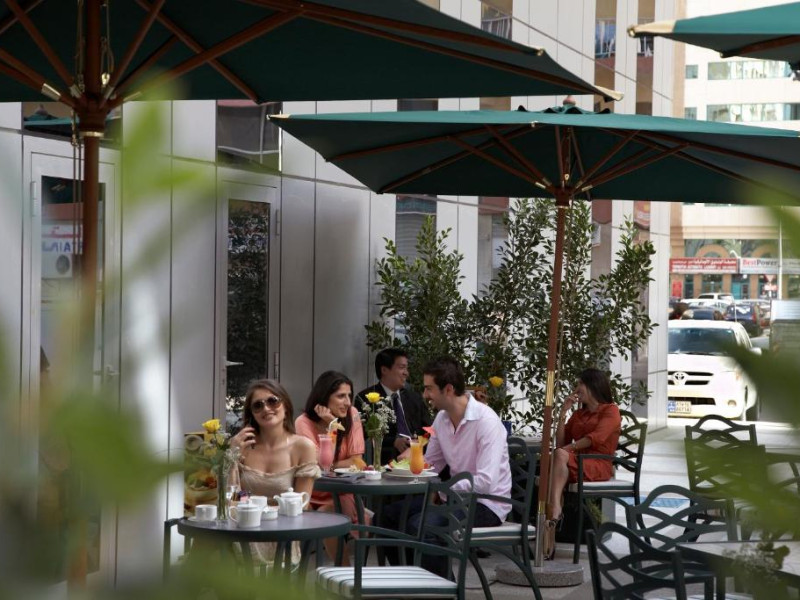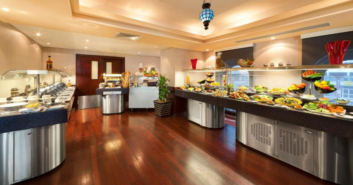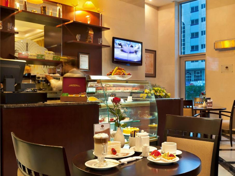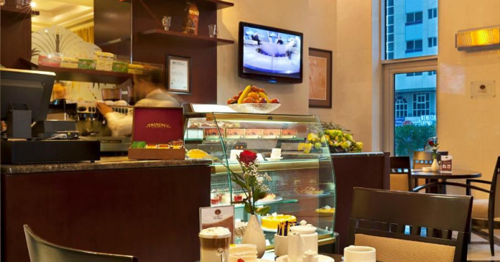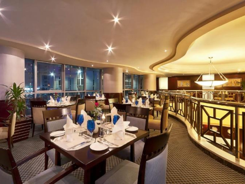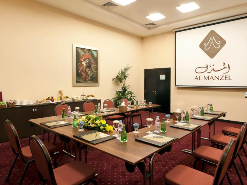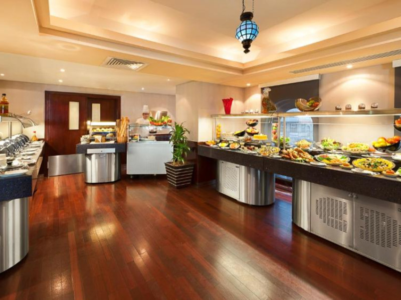 Restaurantul Al Iwan serveste micul dejun tip bufet continental. Pentru pranz si cină, restaurantul oferă preparate din bucătăria internatională si arabă si organizează seri tematice. Oaspetii pot savura băuturi răcoritoare in cafeneaua Al Multaqa, cu vedere la hol, sau pe terasă, in aer liber.