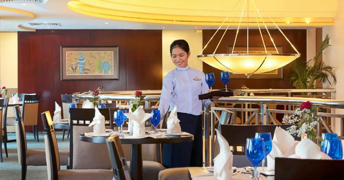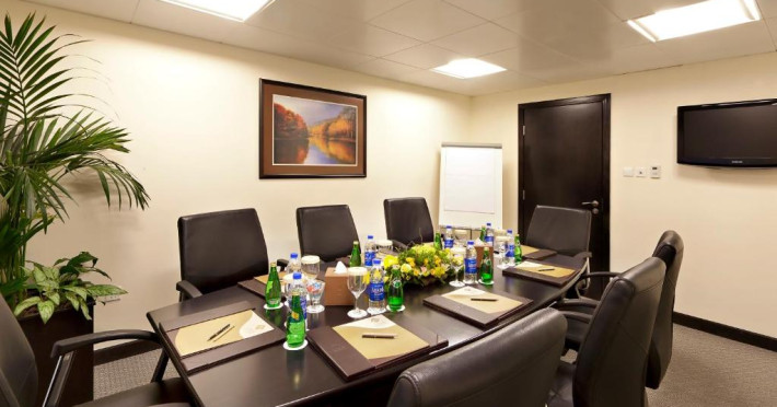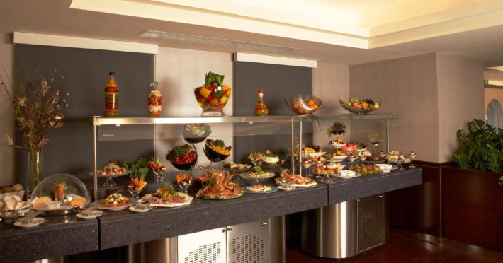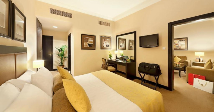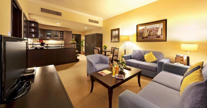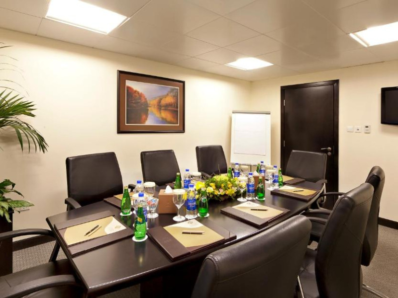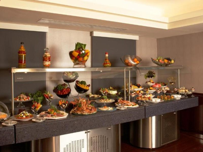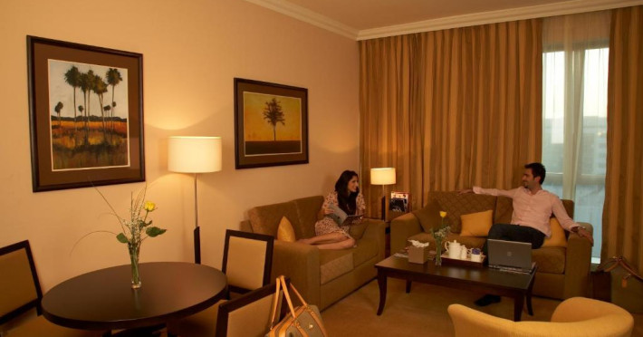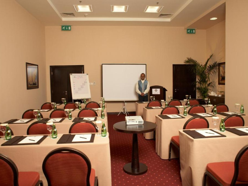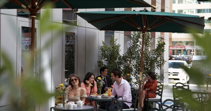 Restaurantul Al Iwan serveste micul dejun tip bufet continental. Pentru pranz si cină, restaurantul oferă preparate din bucătăria internatională si arabă si organizează seri tematice. Oaspetii pot savura băuturi răcoritoare in cafeneaua Al Multaqa, cu vedere la hol, sau pe terasă, in aer liber.