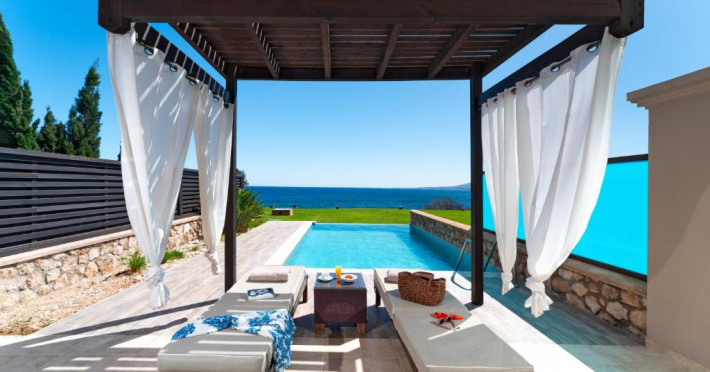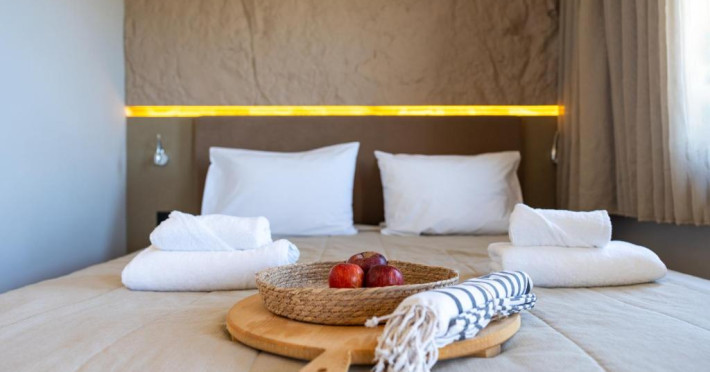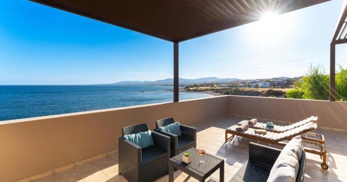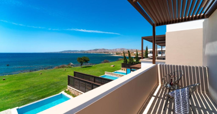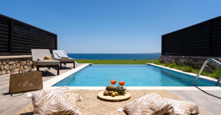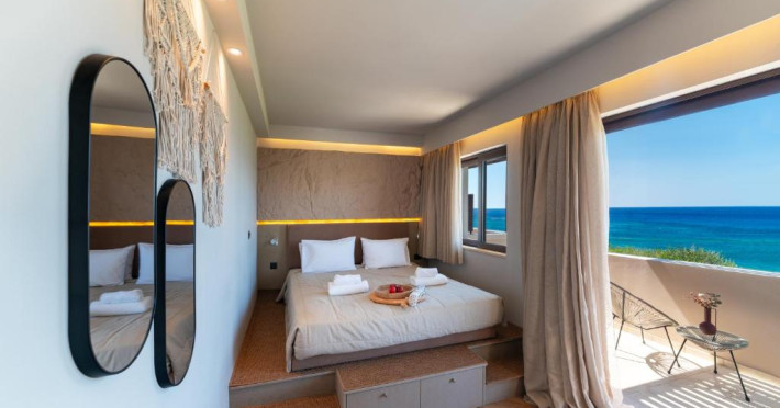 Al Mare Villas oferă studiouri și vile elegante, cu vedere captivantă la Marea Mediteraneană și vile cu piscine private. Acesta este situat strategic, pe coasta plajei Kiotari.