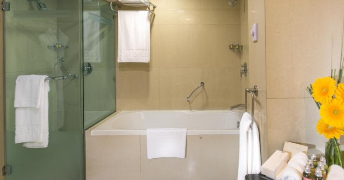 HOTEL AL MUROOJ ROTANA pune la dispozitia clientilor camere dotate cu: Conexiune la Internet, Aer Conditionat, Telefon, Seif, TV, Toaleta, Uscator de par. HOTEL AL MUROOJ ROTANA are urmatoarele facilitati: WiFi Gratuit, Restaurant, Piscina Exterioara, Spa, Teren de Tenis, Business Center, Serviciu de inchiriere Auto, Parcare.Datorita dinamicitatii domeniului disponibilitatea ofertelor se modifica de la un moment la altul. De aceea ofertele sunt valabile in limita locurilor disponibile. Agentia nu este responsabila pentru eventualele neconcordante care pot aparea intre informatiile privind tarifele si alte detalii din site si informatiile primite in agentie. In aceste cazuri vor avea prioritate, intotdeauna, informatiile primite in agentie.