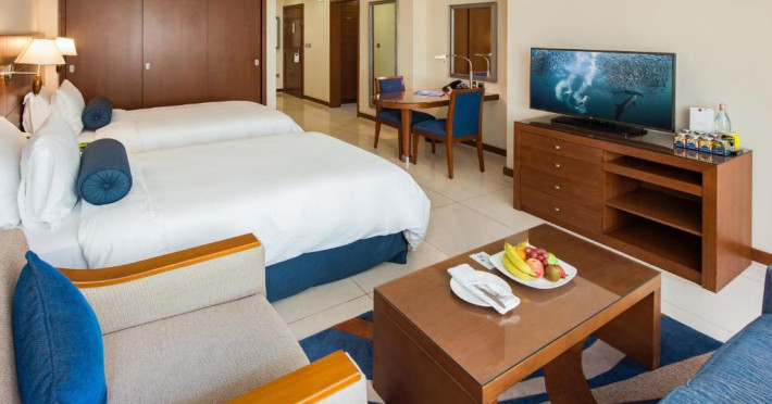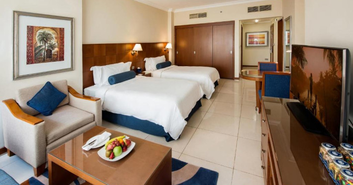 Camerele de la Al Rawda Arjaan by Rotana, Abu Dhabi au un decor elegant, in culori calde. Majoritatea camerelor includ o chicinetă și o zonă de relaxare cu TV prin satelit.
