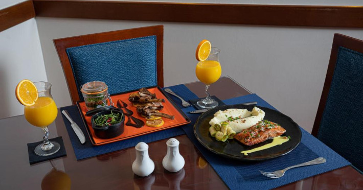 Restaurantul Al Dar oferă mese tip bufet și un meniu cu o selecție de preparate continentale.