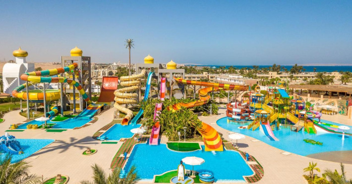 Aladdin Beach Resort este un hotel construit pe o suprafață de 134 mii/ m², în apropiere de centrul orașului Hurghada si de tot ceea ce statiunea are de oferit si la o distanță de 8 km de aeroport. Hotelul, deschis in anul 1995 si renovat in 2007, se mândrește cu propria sa plajă privată, cu privelisti frumoase asupra Mării Roșii și cu o serie de activități diferite disponibile pentru toate varstele.