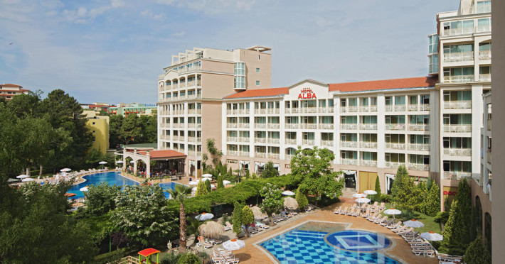 Amplasată în Sunny Beach, la 100 m de plaja Candy Club Sunny, Alba Hotel Sunny Beach este o proprietate de 4 stele care oferă o piscină în aer liber, terasă cu șezlonguri și umbrele de soare și unități de cazare cu aer condiționat. Facilitățile de la Alba Hotel Sunny Beach includ și sală de fitness. Pentru petrecerea timpului liber oaspeții au la dispoziție activități de agrement pe timpul zilei și programe de divertisment seara. Proprietatea are, de asemenea, servicii de recepție cu program non - stop, concierge și închirieri auto. Se oferă acces gratuit la internet Wi-fi în spațiile publice. Parcarea este posibilă pe stradă, în imediata apropiere a proprietății.