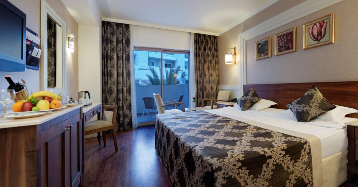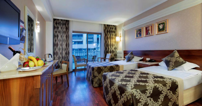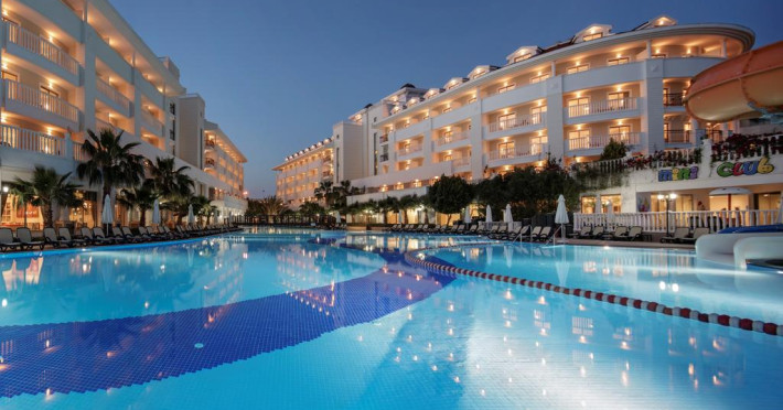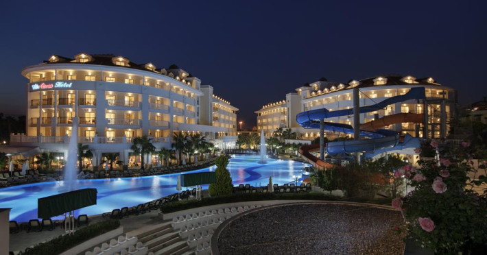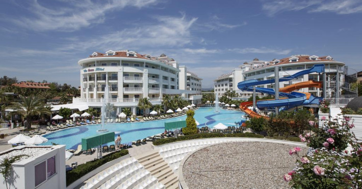 Alba Queen Hotel este un complex de 5 stele care se află pe malul mării, în Side (Antalya), și oferă plajă privată, piscină în aer liber și piscină interioară. Facilitățile de la Alba Queen Hotel includ sală de fitness și teren de tenis. Pentru petrecerea timpului liber oaspeții au la dispoziție activități de agrement pe timpul zilei și programe de divertisment seara. Proprietatea are, de asemenea, servicii de recepție cu program non - stop, concierge și închirieri auto. Se oferă acces gratuit la internet Wi-fi în spațiile publice. Parcarea este disponibilă la proprietate gratuit.