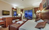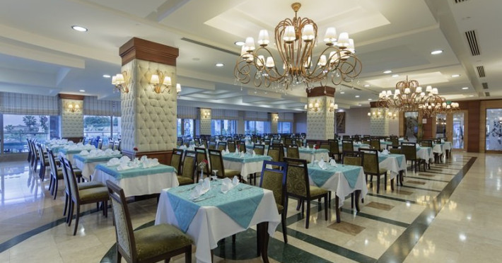 Facilitati hotel: Hotelul ofera oaspetilor sai urmatoarele facilitati: restaurant pricipal, 3 restaurante a la carte, patiserie, 4 baruri, discoteca, piscina exterioara, piscina interioara, internet wi-fi in lobby, lobby bar si barul de la piscina, centru fitness, baie turceasca, sauna, darts, voley, mini golf, boccia, programe de animatie si muzica live, sali de conferinta.