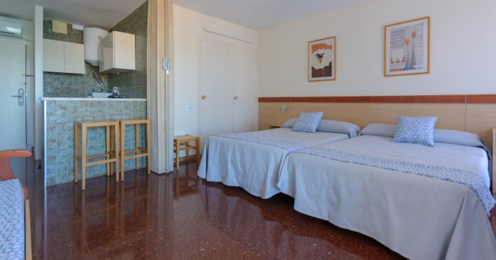 This Apartment Complex is located on Bruselas Street, very close to Llenguadets beach. The property consists of 7 beautifully-designed apartments. The complex benefits from a privileged location and guests can appreciate the breath-taking views overlooking the sea. The complex has a playground, garden, swimming pool, and childrens pool. Guests can also enjoy the bar-restaurant and the supermarket with bakery and newspaper stand at any time. The property also features parking, four elevators and recreational playground. Internet access is available throughout the establishment. The apartments are composed by a room with two beds, a sitting room with a sofa bed, American-style kitchenette. There is also a complete bathroom and a terrace in every room..The Apartment Complex is located in Bruselas Street, close lo Llenguadets beach..The apartments are composed by a room with two beds, a sitting room with a sofa bed, american kitchenette, complete bathroom and a terrace..Offers fee safe boxes in the Reception. The complex has apartments adapted for disabled.Datorita dinamicitatii domeniului disponibilitatea ofertelor se modifica de la un moment la altul. De aceea ofertele sunt valabile in limita locurilor disponibile. Agentia nu este responsabila pentru eventualele neconcordante care pot aparea intre informatiile privind tarifele si alte detalii din site si informatiile primite in agentie. In aceste cazuri vor avea prioritate, intotdeauna, informatiile primite in agentie.