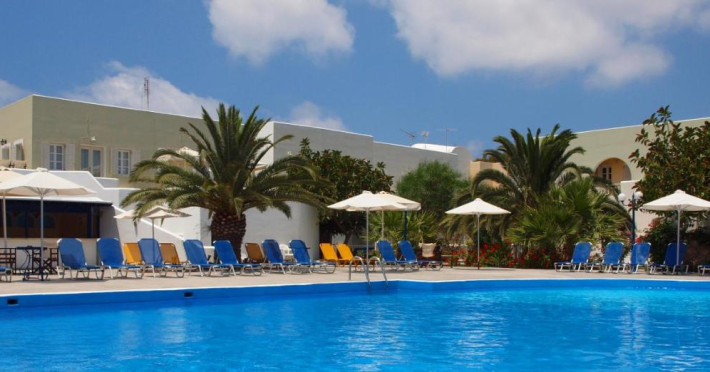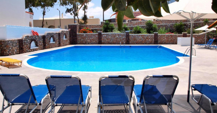 Albatros Hotel are piscină și bar la piscină. În întregul hotel este disponibil Wi-Fi gratuit . Un mic dejun american tip bufet este oferit în sala de mese. Cina este servită în restaurant şi include mâncăruri grecești. Oaspeții se pot relaxa pe şezlongurile pentru plajă gratuite de pe terasă, cu un cocktail de la bar. Recepția este deschisă nonstop, iar personalul acesteia poate programa excursii la satul Oia, aflat 13 km. Oaspeţii au posibilitatea de a închiria autoturisme, iar hotelul oferă parcare privată gratuită.