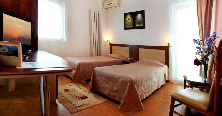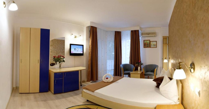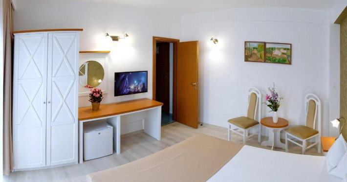Localizare: Hotelul este situat in centrul statiunii, la 50 m de plaja, si este deschis tot timpul anului.Descriere: Hotelul dispune de 81 de locuri de cazare, distribuite astfel: 5 camere single, 33 camere duble si 5 apartamente.