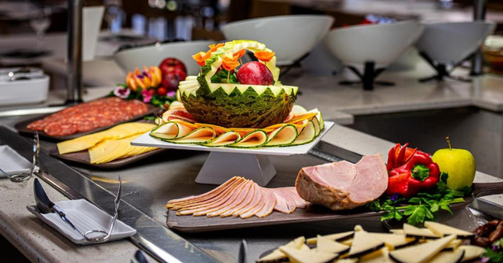 Există diverse locuri unde se poate lua masa: un restaurant, o sală de mese, o cafenea și un bar. Locul de cazare oferă pentru masă pachete de servicii cu mic dejun inclus, demipensiune, pensiune completă și regim all inclusive. Un bufet delicios și bogat iși așteaptă clienții la micul dejun, pranz și cină.