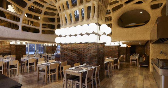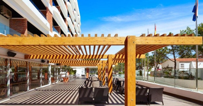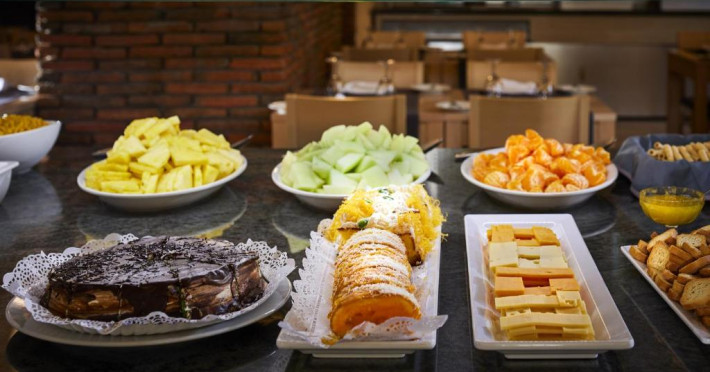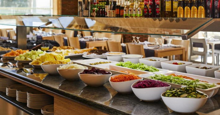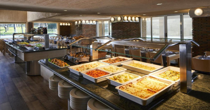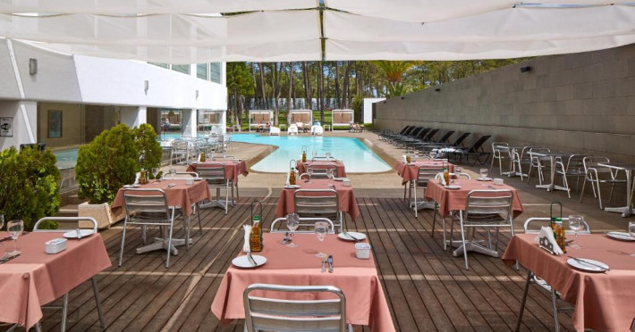 Oaspeții pot savura preparate mediteraneene la Restaurantul Al-Gharb, decorat in stil arab, in timp ce admiră vederea panoramică la piscină. Barul Alambique servește băuturi și gustări, oferind muzică live.