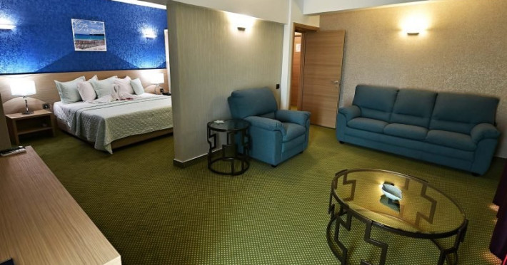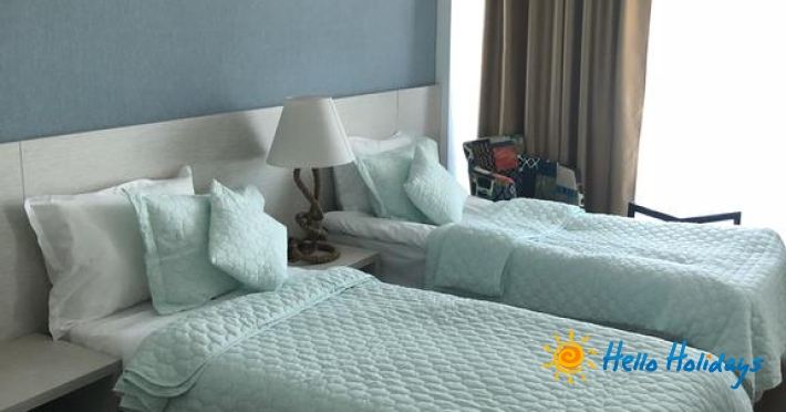 Apartamentele au vedere frontala la mare si sunt compuse din living cu canapea extensibila, dormitor cu pat matrimonial, dressing, mini bar, baie cu cabina de dus, baie suplimentara, balcon, aer conditionat (doar in living), TV in ambele camere, camerele nu sunt separate de usa. Acestea au o suprafata de 60 mp.