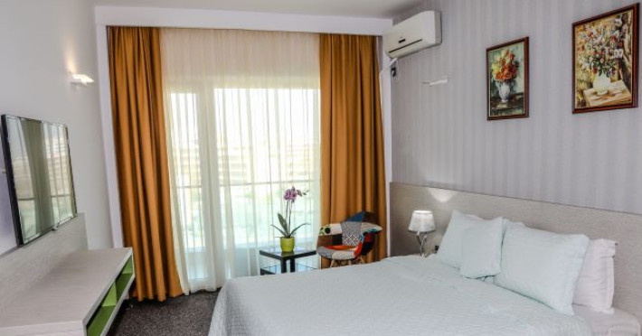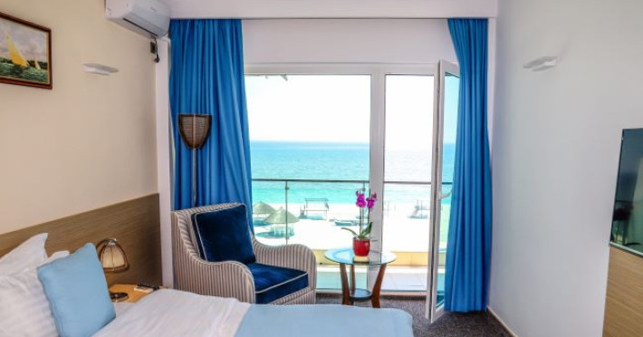 Camerele hotelului dispun de balcon cu vedere spre mare, baie, televizor, mini-bar, frigider, telefon, aer conditionat.