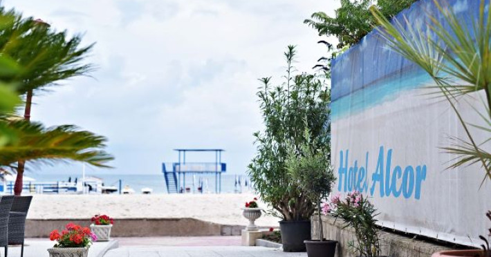 Hotelul Alcor este situat la o distanta de cativa metri de tarmul marii, in zona nordica a statiunii Mamaia, zona considerata a fi selecta si renumita pentru plajele generoase.