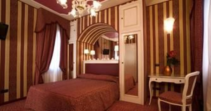 Alcyone Hotel located in the heart of Venice a few steps from the suggestive San Mark Square and 5 minutes walk from the famous Rialto Bridge, in a very central commercial district with the major turistic attractions located nearby. The structure, completely renewed on September 2008, is located in a XVII century building facing on Rio San Salvador where is possible to appreciate/admire the gondolas passage directly from the breakfast room or through the windows of some rooms. The rooms are provided with air conditioning and satellite TV. They are decorated in Venetian style.Datorita dinamicitatii domeniului disponibilitatea ofertelor se modifica de la un moment la altul. De aceea ofertele sunt valabile in limita locurilor disponibile. Agentia nu este responsabila pentru eventualele neconcordante care pot aparea intre informatiile privind tarifele si alte detalii din site si informatiile primite in agentie. In aceste cazuri vor avea prioritate, intotdeauna, informatiile primite in agentie.