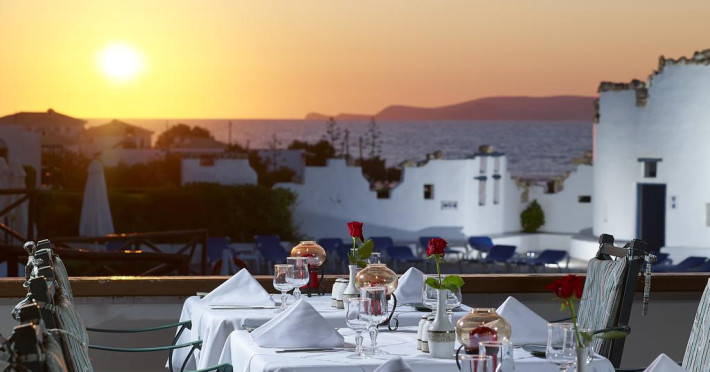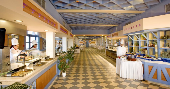 La Cretan Village Beach Hotel oaspeții au la dispoziție 4 restaurante unde pot savura mâncăruri delicioase, în stil bufet sau à la carte. Preparate din bucătăria internațională, grecească și mediteraneană așteaptă să fie degustate în fiecare zi la micul dejun, prânz și cină. Masa poate fi servită atât în interior, cît si în aer liber, pe terasă, în funcție de vreme. 5 baruri, dintre care unul la piscină, sunt disponibile cu o ofertă variată de băuturi răcoritoare și alcoolice. În cadrul proprietății există și un snack bar care servește băuturi și gustări.