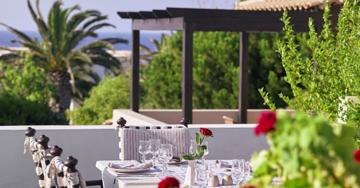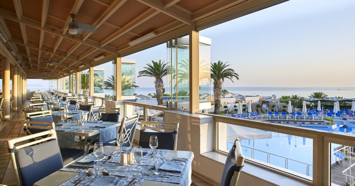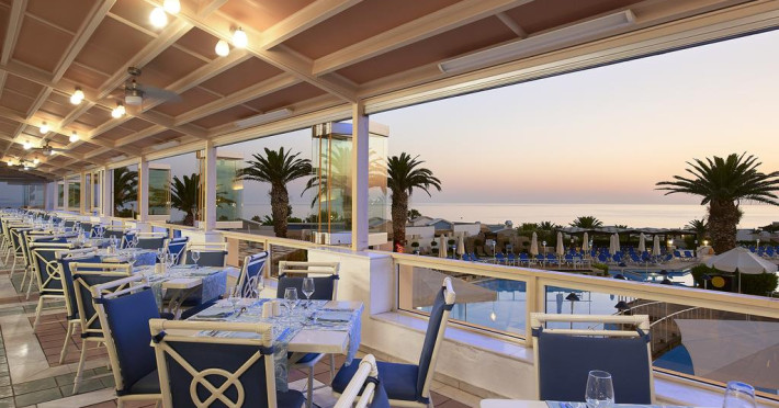 La Aldemar Knossos Royal oaspeții au la dispoziție 4 restaurante unde pot savura mâncăruri delicioase, în stil bufet sau à la carte. Preparate din bucătăria internațională, grecească și mediteraneană așteaptă să fie degustate în fiecare zi la micul dejun, prânz și cină. Masa poate fi servită atât în interior, cît si în aer liber, pe terasă, în funcție de vreme. 3 baruri, dintre care unul la piscină, sunt disponibile cu o ofertă variată de băuturi răcoritoare și alcoolice. În cadrul proprietății există și un snack bar care servește băuturi și gustări.