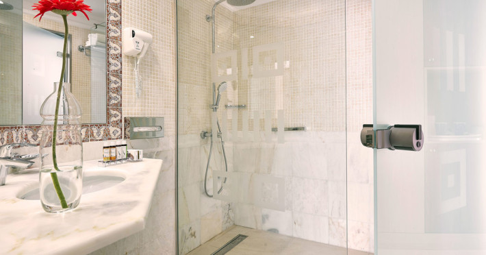 Camerele recent renovate sunt confortabile, au vederi la mare sau la gradina si sunt dotate cu baie cu cada, uscator de par, TV satelit, WI-FI, telefon cu linie directa, frigider, cutie de valori, balcon sau veranda mobilata. Camerele duble pot avea un pat dublu sau 2 paturi separate si o sofa.