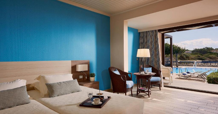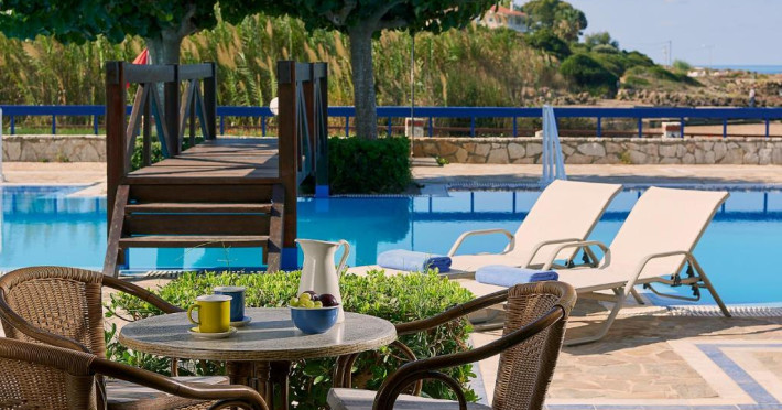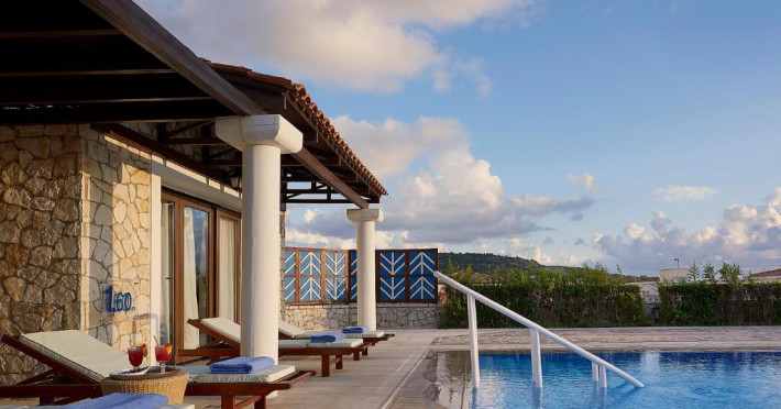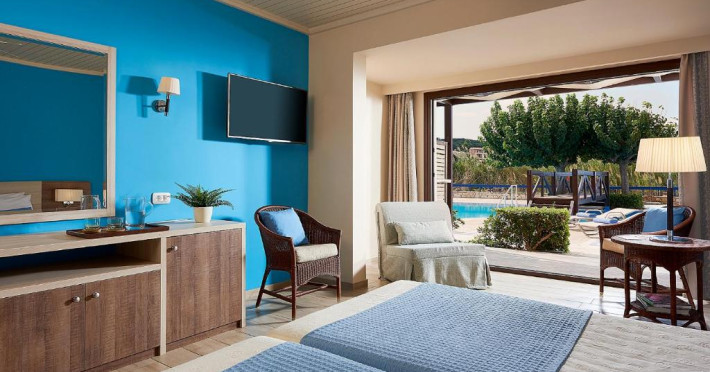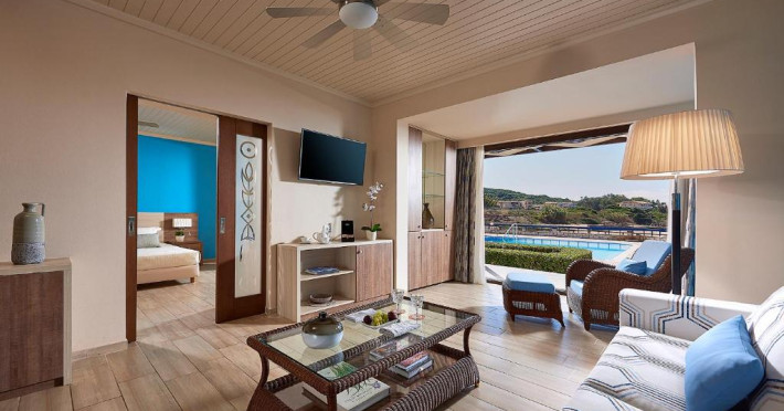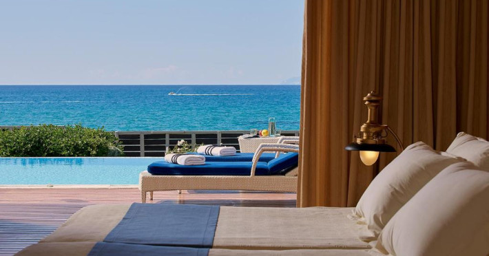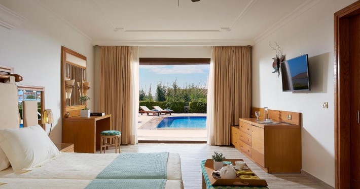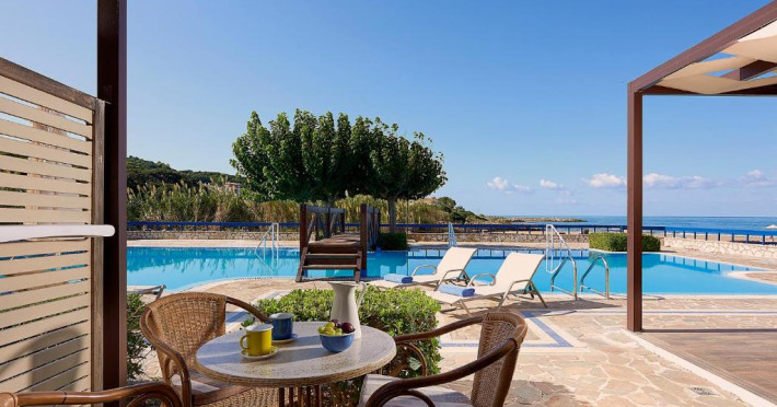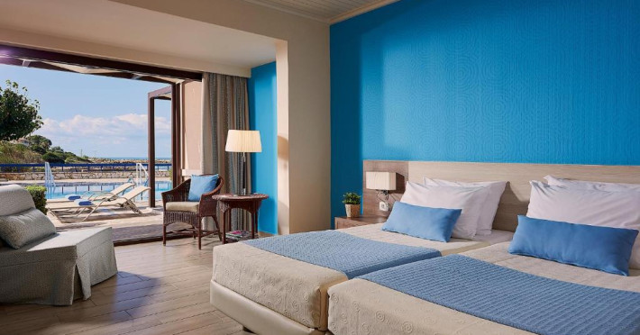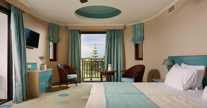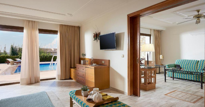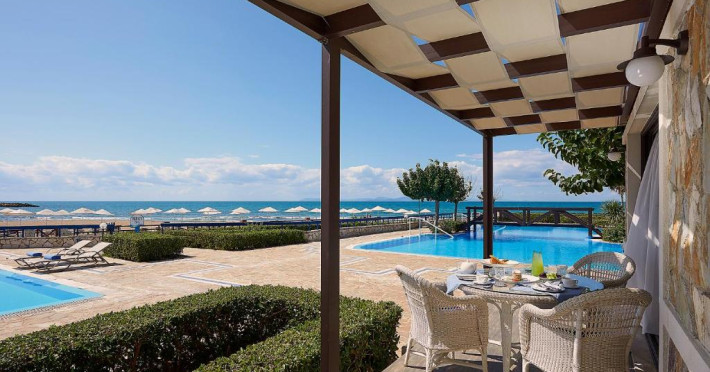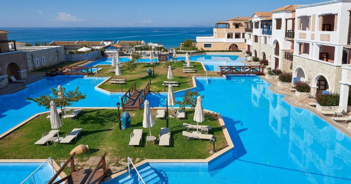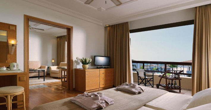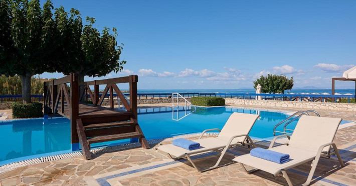 Oferind un centru spa premiat, o gamă largă de activităti sportive si restaurante gastronomice, complexul de 5 stele Olympian Village oferă camere de lux, cu vedere la domeniul din jurul hotelului sau Marea Ionică. Cu vedere la frumoasa coastă a Mării Ionice si inconjurat de grădini luxuriante si piscine, complexul de 5 stele Aldemar Olympian Village oferă camere cu aer conditionat, bungalouri si apartamente. Toate spatiile de cazare oferă TV prin satelit cu canale de muzică si balcon amenajat sau verandă. La complexul Aldemar Olympian Village, oaspetii pot face baie intr-una dintre cele 2 piscine mari, cu apă de mare, ale hotelului sau pot merge pe plaja de nisip unde vor găsi sezlonguri si umbrele de soare. Există, de asemenea, 2 piscine separate pentru copii, precum si 21 de bazine comune la complex. Printre numeroasele facilităti bune oferite, oaspetii se pot bucura de tratamente la centrul Thalasso & Spa, pot inota in piscina in aer liber sau se pot relaxa pe plaja lungă de nisip de langă hotel. Restaurantul à la carte Artemis are un meniu cu delicatese traditionale italiene, in timp ce restaurantul principal Olympia oferă o selectie de creatii deosebite si pline de culoare, servite sub formă de bufet. Restaurantul gastronomic Marina Club are un meniu excelent cu mancăruri frantuzesti, in timp ce Thalassa, situat la malul mării, este specializat in preparate din peste proaspăt.