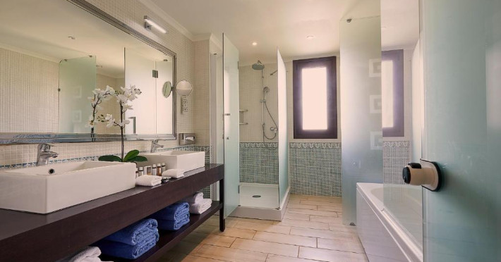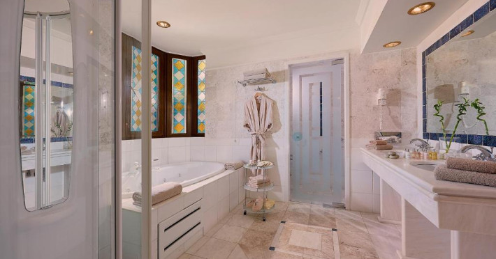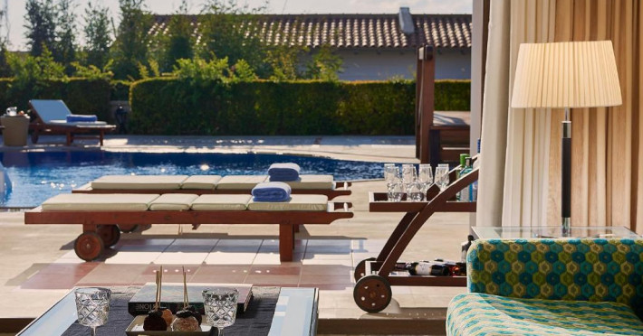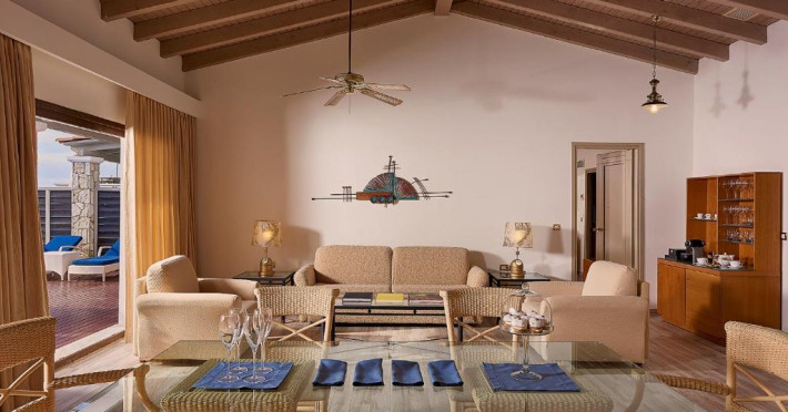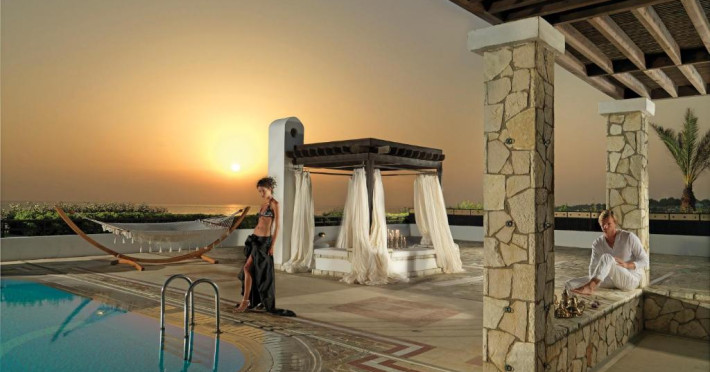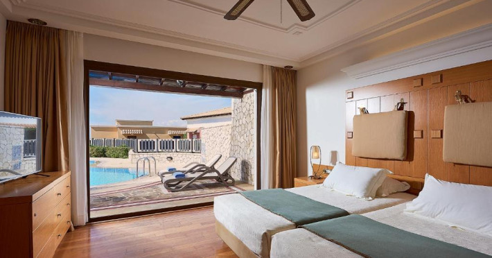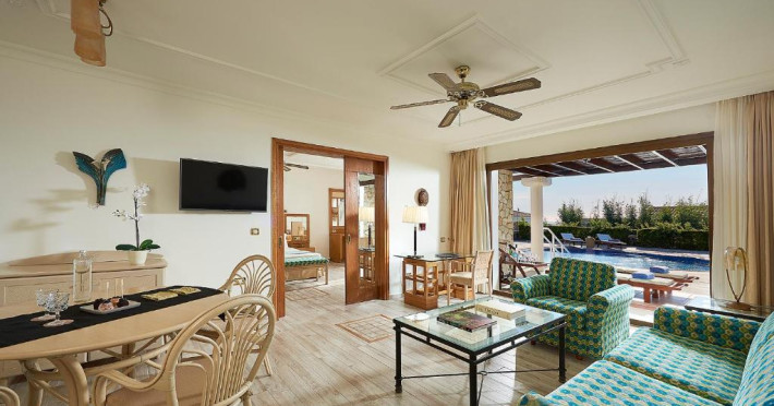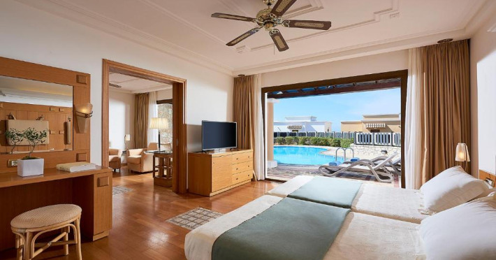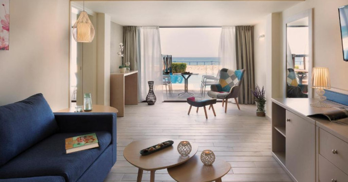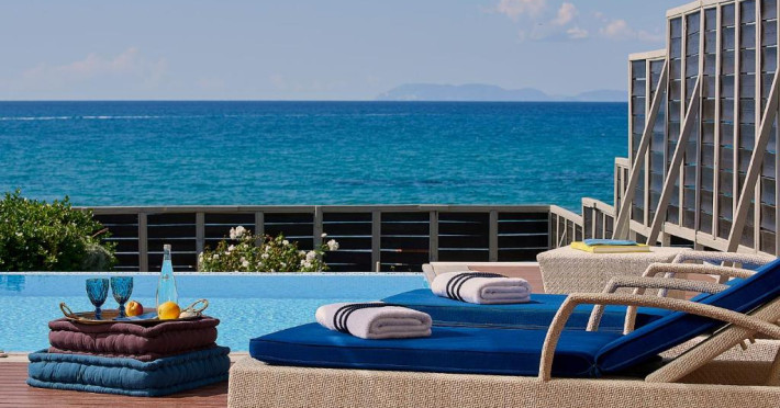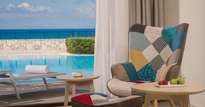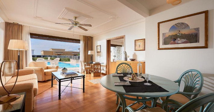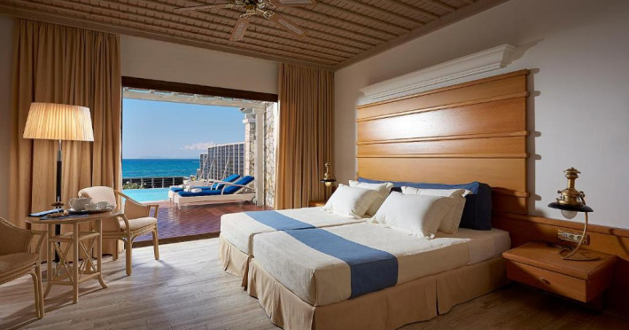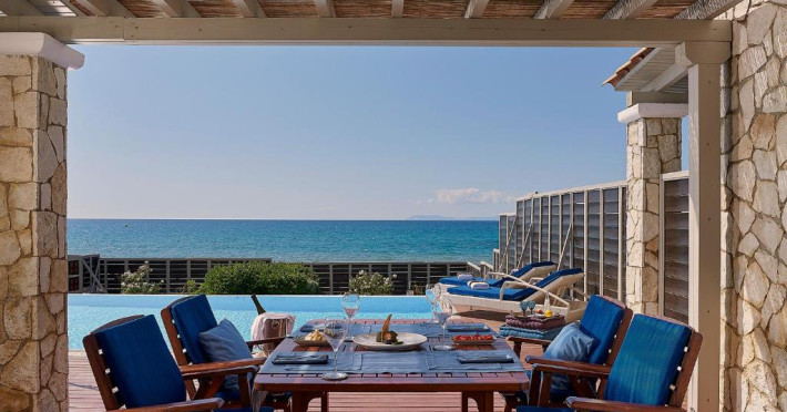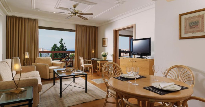Oferind un centru spa premiat, o gamă largă de activităti sportive si restaurante gastronomice, complexul de 5 stele Olympian Village oferă camere de lux, cu vedere la domeniul din jurul hotelului sau Marea Ionică. Cu vedere la frumoasa coastă a Mării Ionice si inconjurat de grădini luxuriante si piscine, complexul de 5 stele Aldemar Olympian Village oferă camere cu aer conditionat, bungalouri si apartamente. Toate spatiile de cazare oferă TV prin satelit cu canale de muzică si balcon amenajat sau verandă. La complexul Aldemar Olympian Village, oaspetii pot face baie intr-una dintre cele 2 piscine mari, cu apă de mare, ale hotelului sau pot merge pe plaja de nisip unde vor găsi sezlonguri si umbrele de soare. Există, de asemenea, 2 piscine separate pentru copii, precum si 21 de bazine comune la complex. Printre numeroasele facilităti bune oferite, oaspetii se pot bucura de tratamente la centrul Thalasso & Spa, pot inota in piscina in aer liber sau se pot relaxa pe plaja lungă de nisip de langă hotel. Restaurantul à la carte Artemis are un meniu cu delicatese traditionale italiene, in timp ce restaurantul principal Olympia oferă o selectie de creatii deosebite si pline de culoare, servite sub formă de bufet. Restaurantul gastronomic Marina Club are un meniu excelent cu mancăruri frantuzesti, in timp ce Thalassa, situat la malul mării, este specializat in preparate din peste proaspăt.