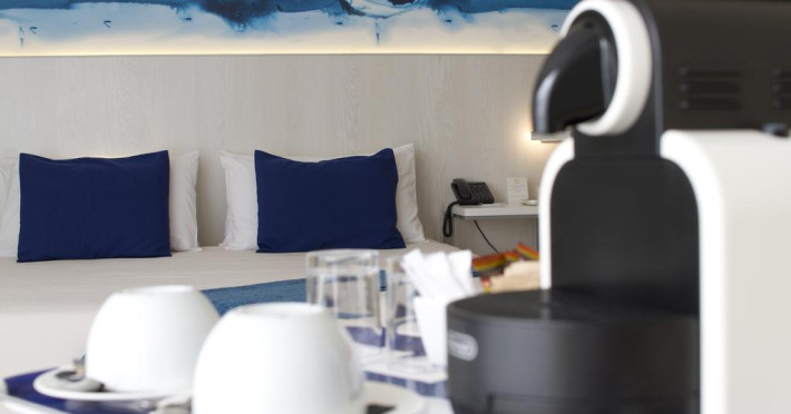 În camere există baie cu cadă sau duș ce are în dotare foehn și articole de toaletă gratuite. Fiecare cameră dispune de mașină pentru preparare cafea sau ceai. Camerele de la Alegria Mar Mediterrania sunt dotate cu aer condiționat, Tv cu canale prin satelit și seif. Unele camere au vedere la mare. Oaspeții au acces gratuit la serviciul Wi-fi în camere. Curățenia in cameră se face zilnic. Toate camerele spațioase de la Alegria Mar Mediterrania au canapea în living, ceea ce oferă un plus de confort. Fiecare unitate de cazare are frigider. Proprietatea oferă camere pentru nefumători.