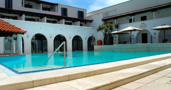 -1 piscina in aer liber cu apa de mare, sezlonguri si umbrele gratuite langa piscina, fara prosoape de baie.