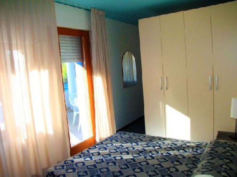 JUNIOR ROOM: Acest tip de camera are in total 20 mp incluzand baia si balconul, are un pat matrimonial pe care un dressing il separa de paturile pentru copii (un pat single + 2 paturi supraetajate). Camera poate fi rezervata pentru maxim 5 persoane. Servicii de plaja incluse - in randul trei de sezlonguri.