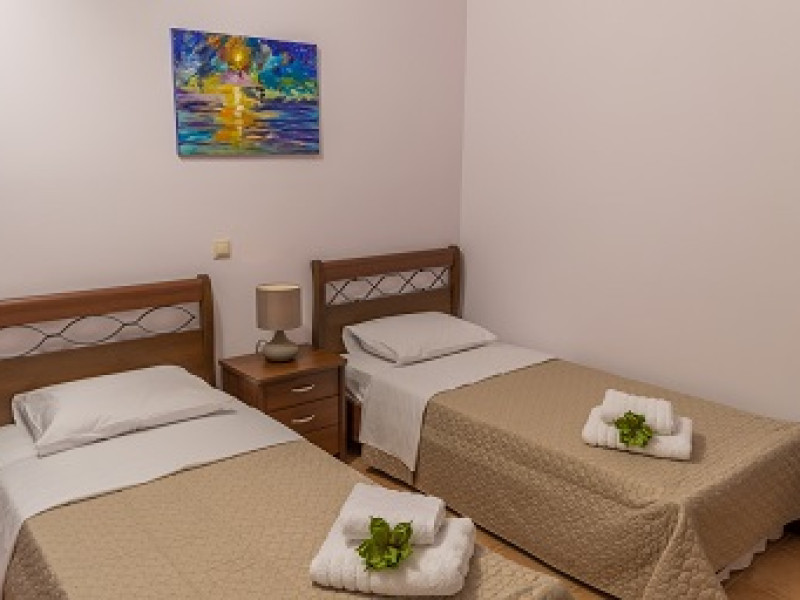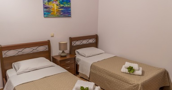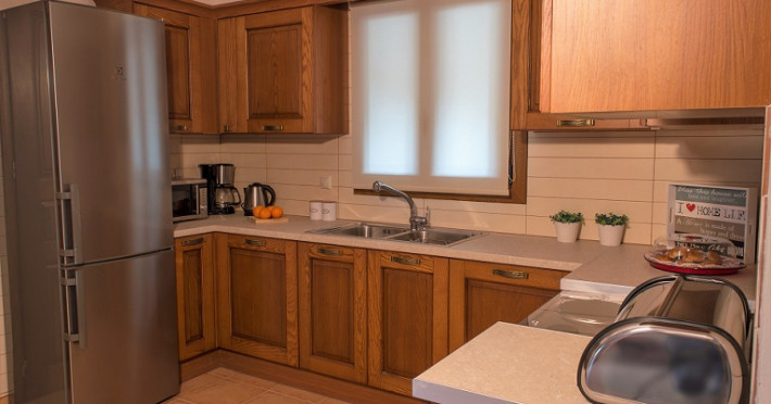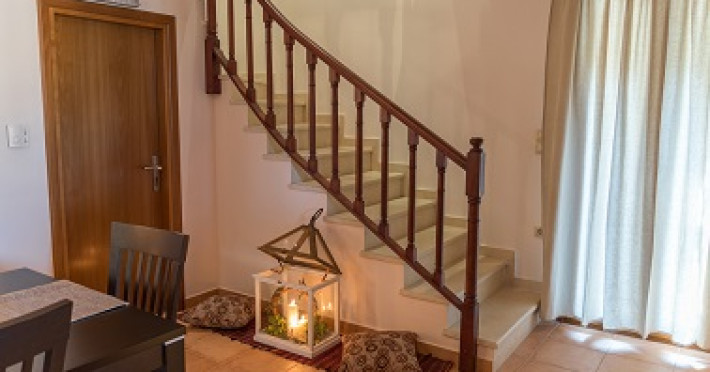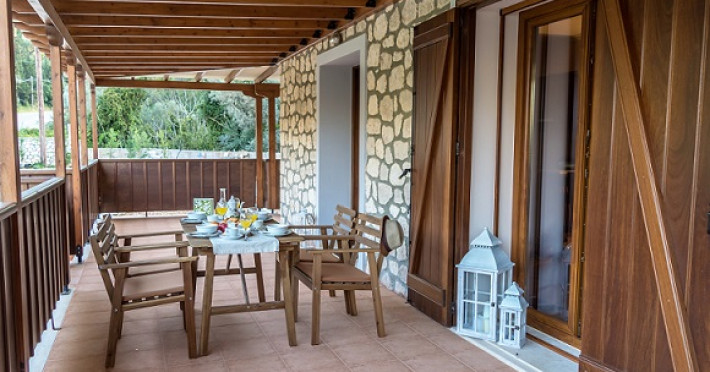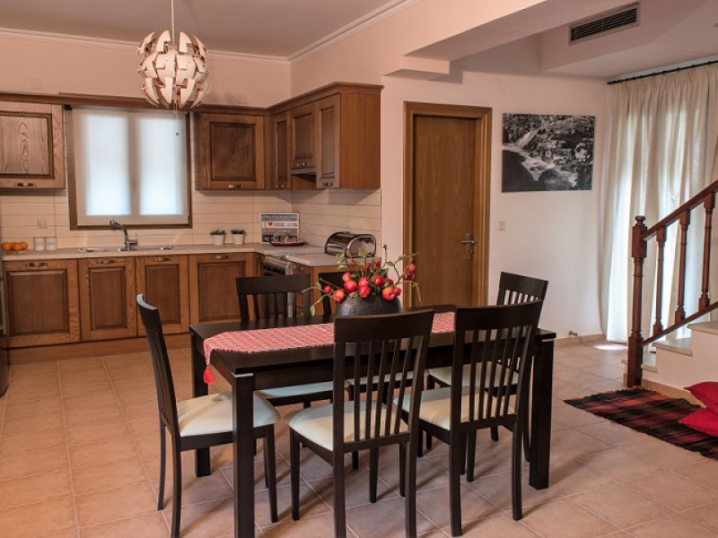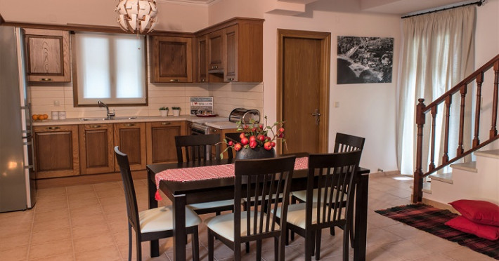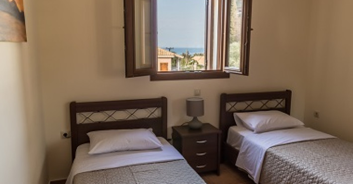 Proprietatea, cu minunata sa piatră și grădini mediteraneene, este construită în stil tradițional lefkadian. Bucătărie pe plan deschis, sufragerie, living și WC. Bucătăria este complet echipată cu ustensile care corespund nevoilor dumneavoastră. Există, de asemenea, o mașină de spălat vase și un cuptor cu microunde. Scara duce către etaj, unde există, 2 dormitoare cu 1 pat dublu și 2 paturi de o persoană. Fiecare casă are propriul spațiu în aer liber și balcon sau patio și parcare privată, desigur.
