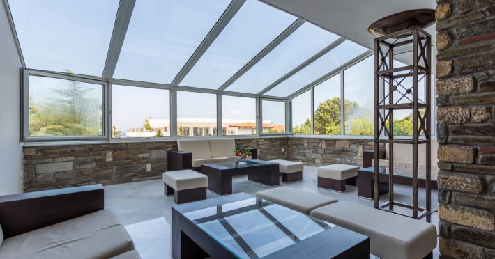 Cel mai apropiat aeroport este Aeroportul Salonic, situat la o distanță de 67 km. La cerere proprietatea organizează transfer la/de la aeroport contra cost.