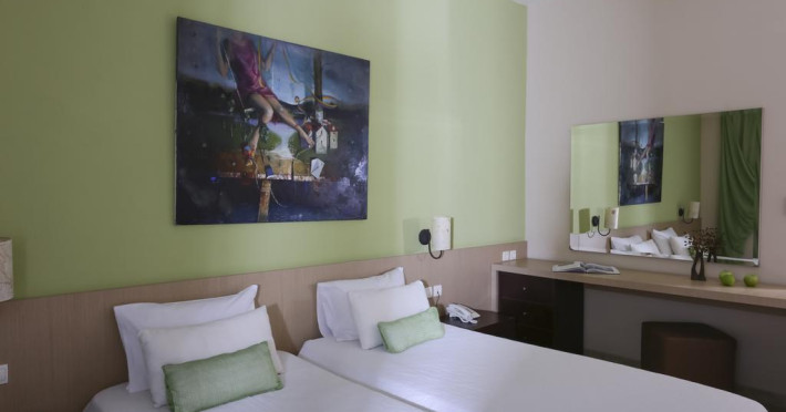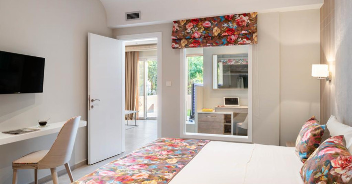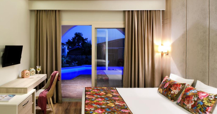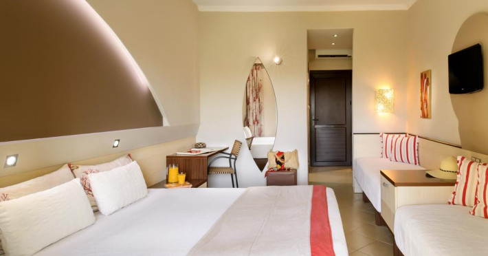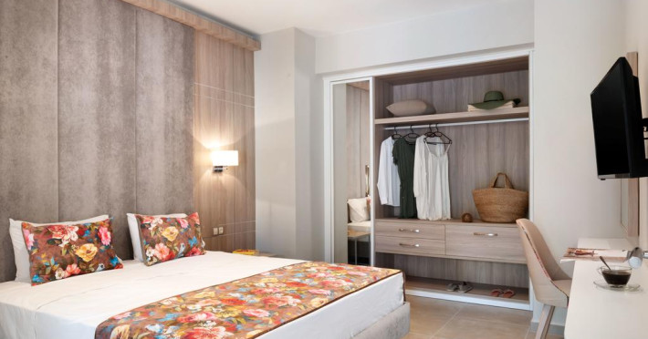 Sunt disponibile 225 camere. Camerele de la Alexandra Beach & Spa sunt dotate cu aer condiționat, Tv cu canale prin satelit și seif. În camere există baie cu cadă sau duș ce are în dotare foehn și articole de toaletă gratuite. Oaspeții au la dispoziție serviciul de room service pentru a servi masa sau diverse băuturi. Unele camere au balcon cu vedere la mare, unde oaspeții pot admira apusul sau răsăritul soarelui. Oaspeții au acces gratuit la serviciul Wi-fi în camere. Curățenia in cameră se face zilnic. Proprietatea oferă camere pentru familie cu o suprafață mai mare și un număr mai mare de paturi față de cele standard. Se pot rezerva de asemenea camere pentru nefumători.