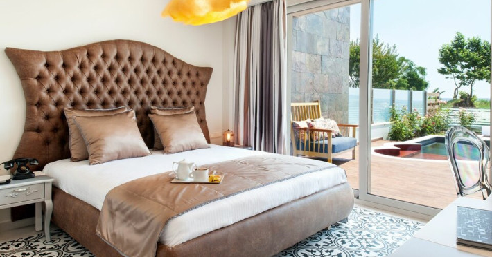 Alexandra Golden Boutique Hote is a beachfront sanctuary on the famous Golden Beach, on Skala Panagias spectacular beach resort, specially designed for couples or a group of friends who appreciate a high state of privacy and refinementl. A haven of luxury, tranquillity, and indulgence where relaxation and sophistication are combined. Mastering the art of hospitality, Alexandra Golden ADULTS ONLY hotel in Thassos island invites guests to live an unforgettable experience of luxury vacations in exquisite surroundings. Guests are invited to surrender to all pleasures of modern living in graciously appointed rooms and immerse in the island lifestyle with some quality beach time, exquisite Mediterranean dining, fun-filled activities, personal pampering and wellbeing. Alexandra Golden is considered by far one of the most remarkable hotels in Golden beach Thassos, for guests seeking an experience beyond the ordinary. Alexandra Golden Boutique Hotel was renovated in 2017. ROOMS: Junior Suite Garden View with Private Pool 2-2 pax, max 2 adults Junior Suite Sea View with Private Pool 2-2 pax, max 2 adults Junior Suite with Garden View 2-2 pax, max 2 adults Junior Suite with Sea View 2-2 pax, max 2 adults Maisonette Sea View Suite with Private Pool 2-2 pax, max 2 adultsDatorita dinamicitatii domeniului disponibilitatea ofertelor se modifica de la un moment la altul. De aceea ofertele sunt valabile in limita locurilor disponibile. Agentia nu este responsabila pentru eventualele neconcordante care pot aparea intre informatiile privind tarifele si alte detalii din site si informatiile primite in agentie. In aceste cazuri vor avea prioritate, intotdeauna, informatiile primite in agentie.