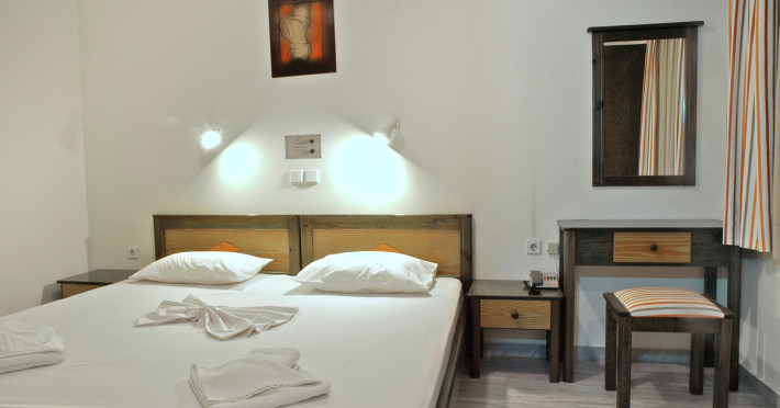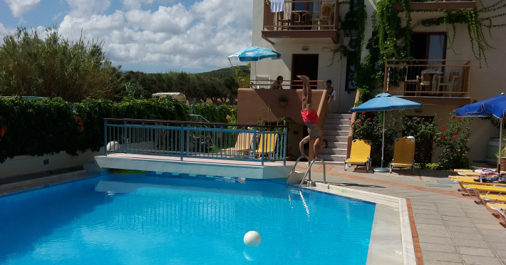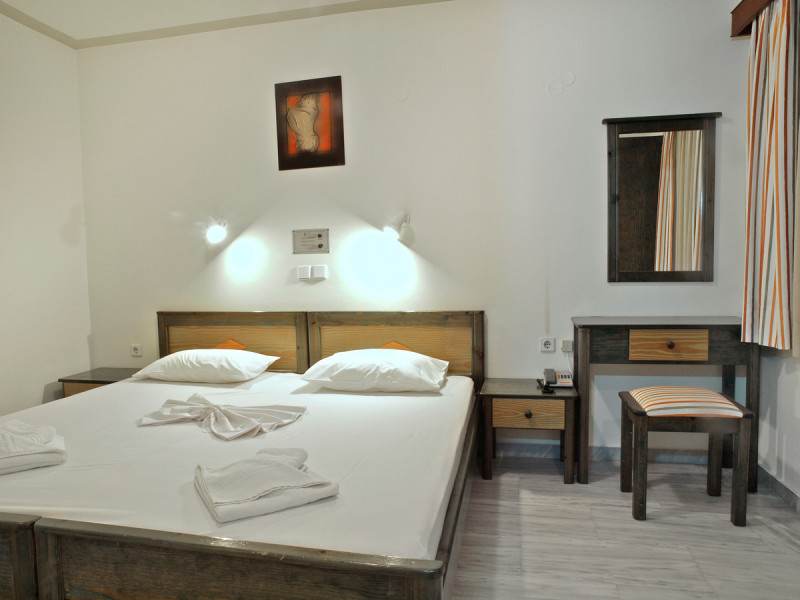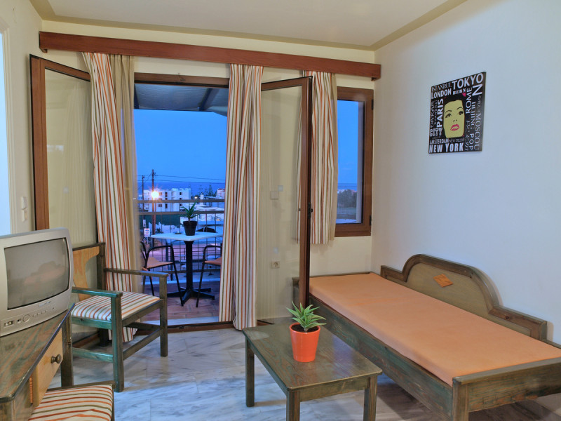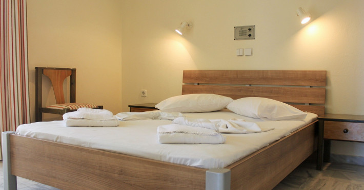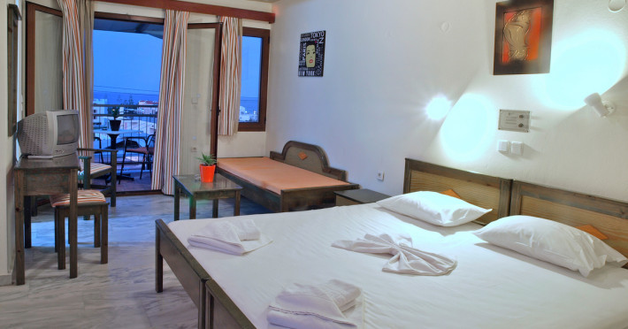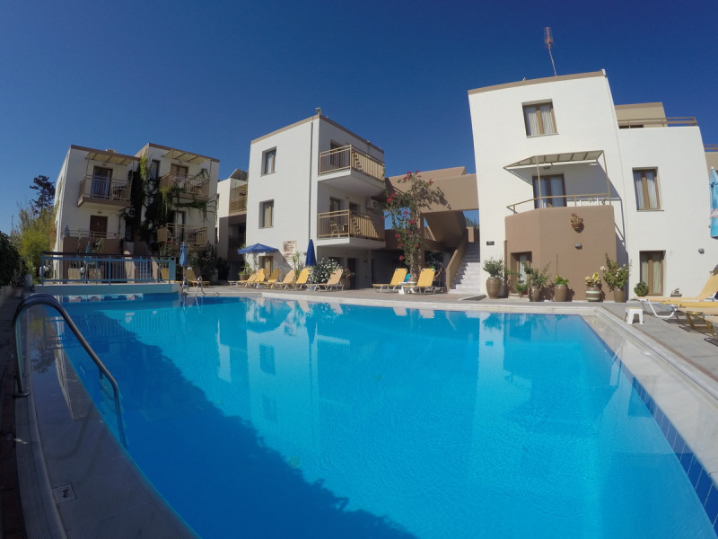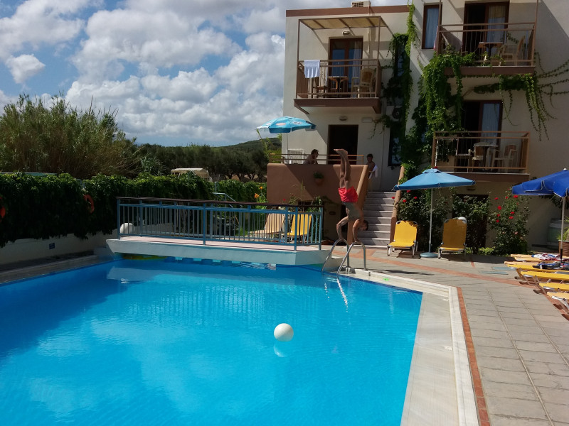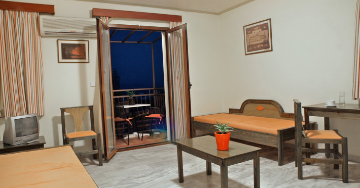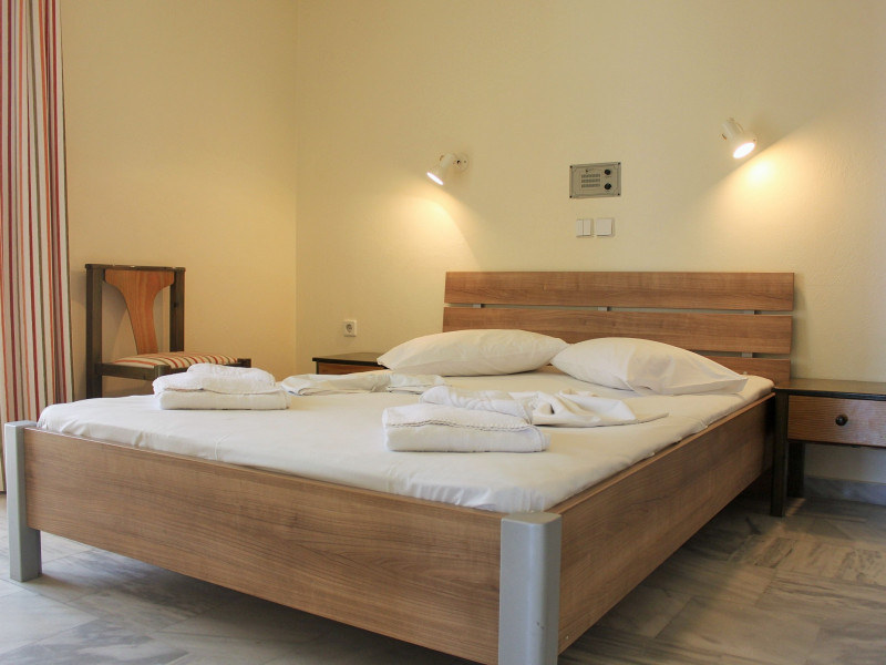 The ALEXANDROS M studios & apartments offers 8 studios for 2 persons, 8 apartments for 4 persons and a suite for 6 people.All have kitchenet,shower,air condition and television. ALEXANROS M also has a swimming pool,children's pool,football field, beach volley and a bar open all day, with snacks and drinks until late at night,At the bar there is satelite TV , dart board and free WI-FI internet in all common areas.In addition, a client library and a large private parking. In our Bar you can find breakfast served.