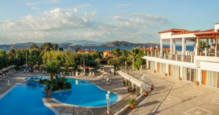 Situat la 108 km distanta de aeroportul "Macedonia" din Salonic, la 5 Km de portul Ouranopolis si la doar 500 de m fata de portul Tripiti.