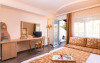 Alexandros Palace is located in Halkidiki, next to Mount Athos area (UNESCO World Heritage Site). The village of Ouranoupolis is within 5km (5 min driving distance). A family owned hotel built on a site of 60,000 m² dropping down to a golden beach awarded with the blue flag due to the cleanliness of the water. The distance to Thessaloniki (SKG) airport is 110 km.Full description
