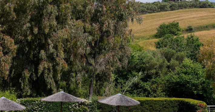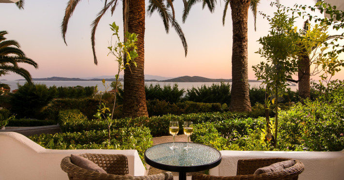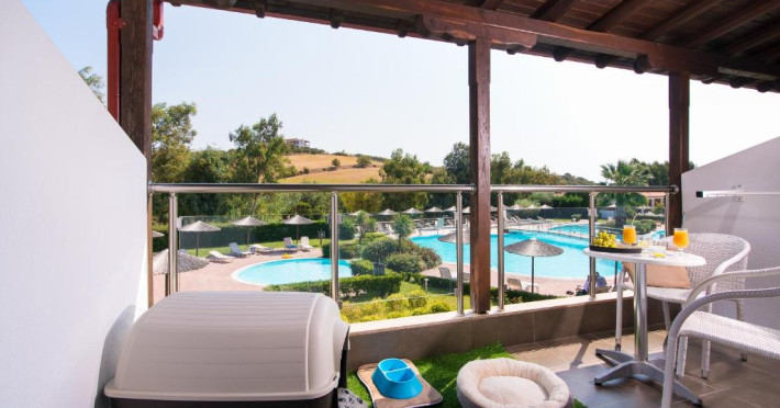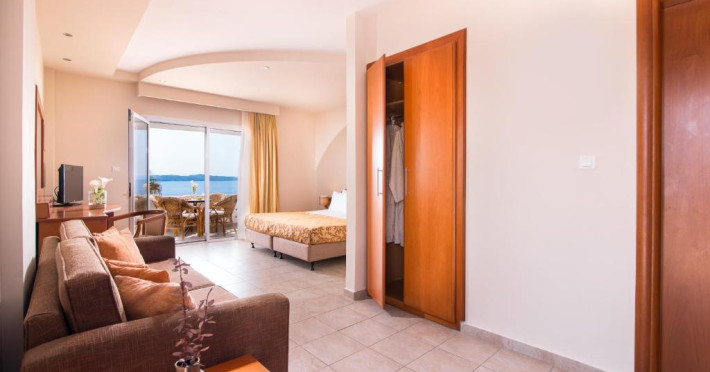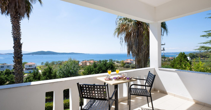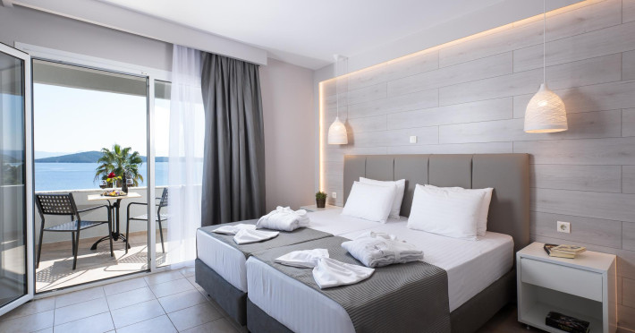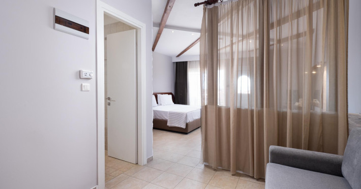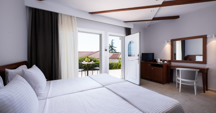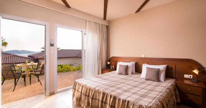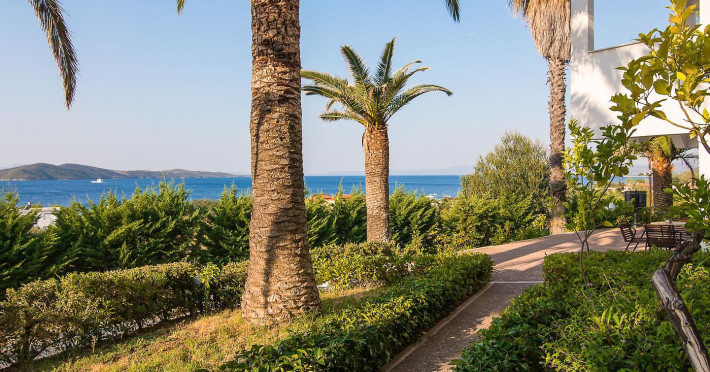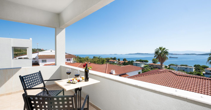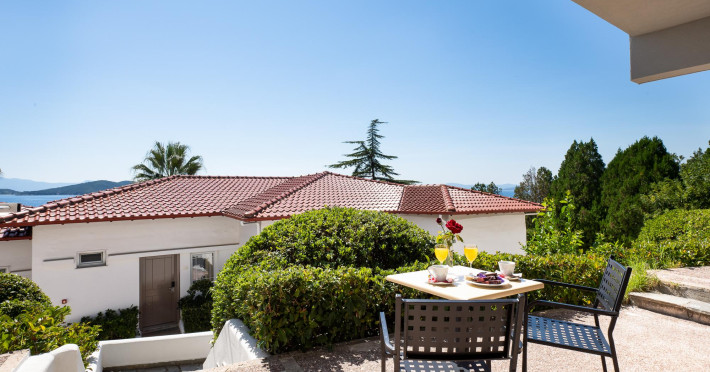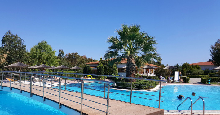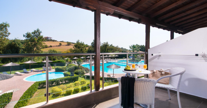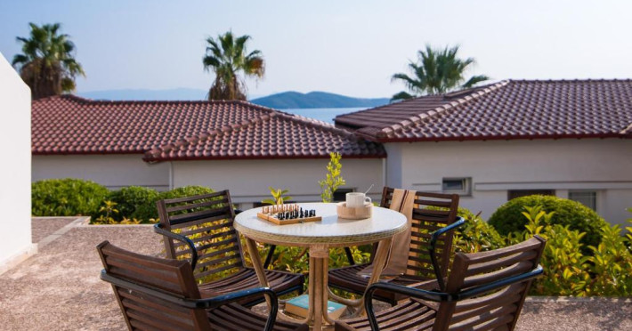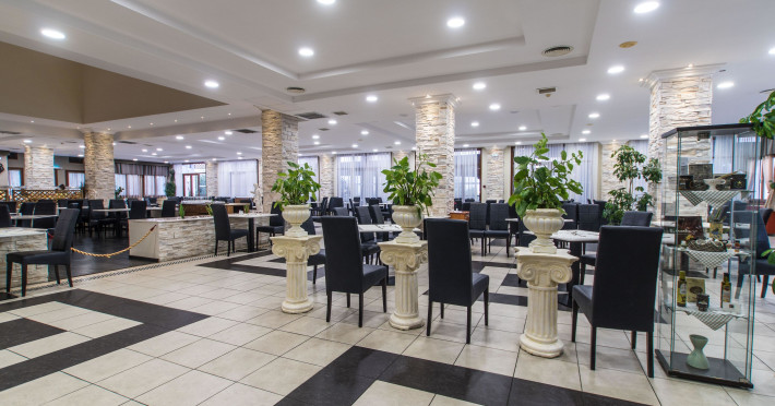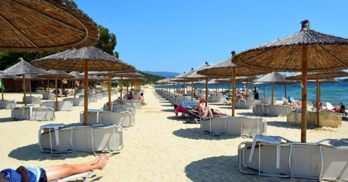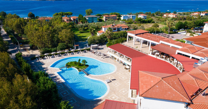 Hotelul spa pentru turiști de la plajă, turiști activi și turiști care fac sport, vacanțieri de la club, familii, celibatari și cei îndrăgostiți de natură, se află la câteva secunde de plaja cu nisip a hotelului, chiar în afara Uranopolisului, până în centrul localității sunt cam 7 km. Stațiile mijloacelor locale de transport în comun se află chiar în fața ușii.