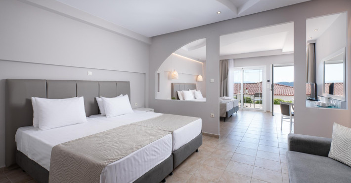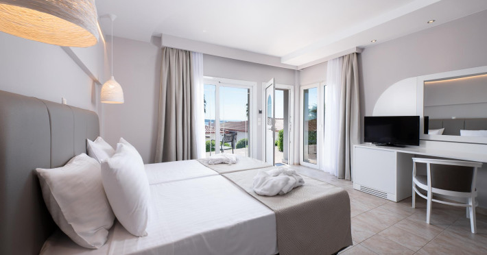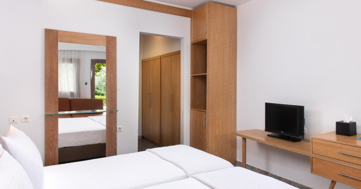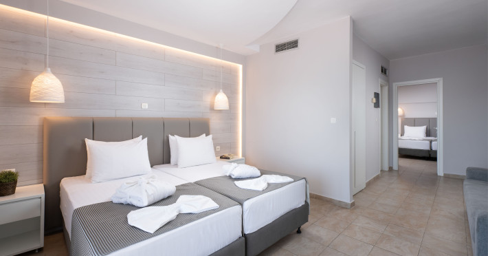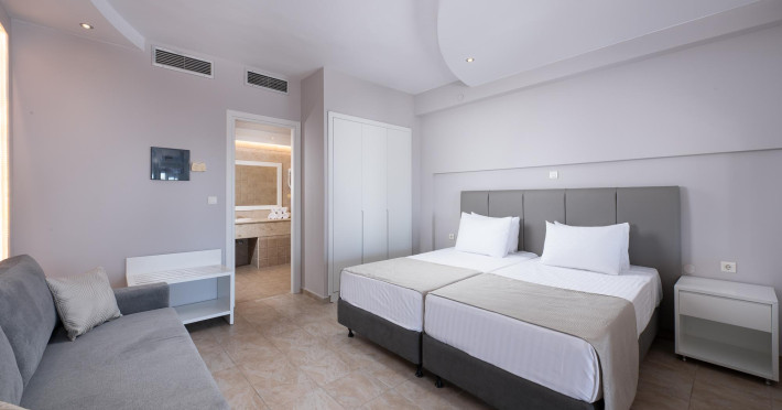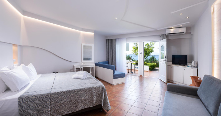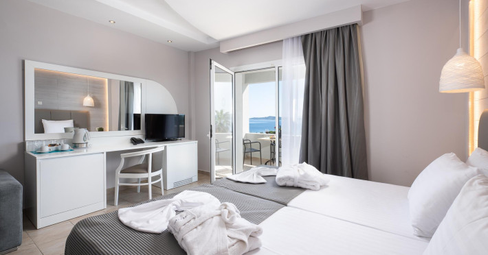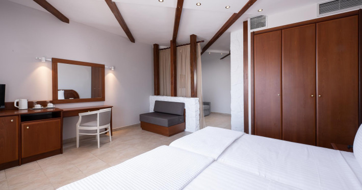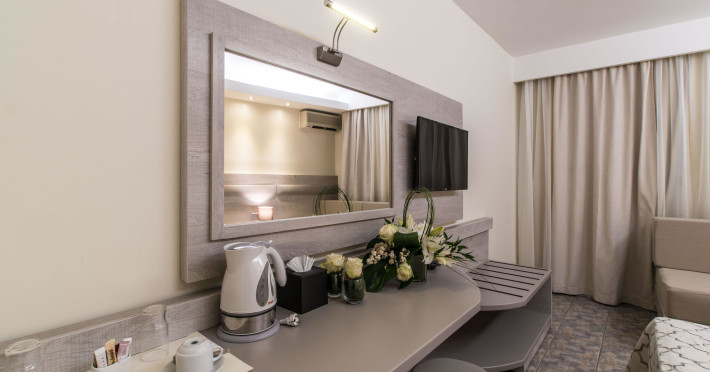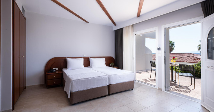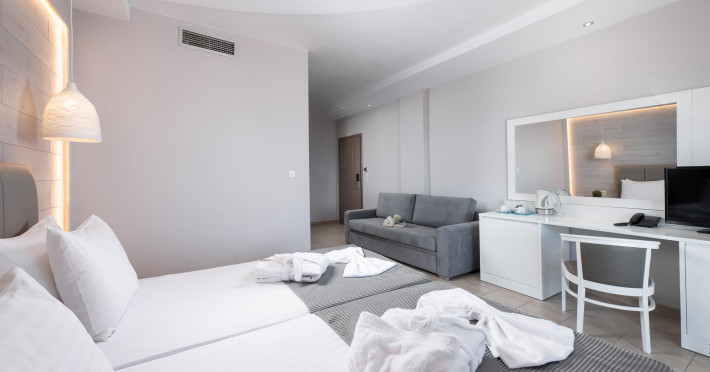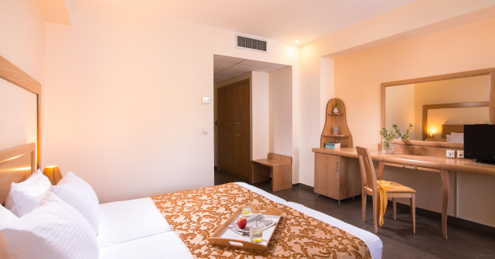 Un aparat de aer condiționat (gratuit) și o pardoseală încălzită ce poate fi ajustată individual creează o atmosferă plăcută în camere. Balconul sau terasa sunt incluse în dotările standard ale majorității camerelor. Camerele au un pat dublu. La cerere pot fi puse la dispoziție paturi gratuite pentru copii. Contra cost, clienții pot să-și depoziteze lucrurile de valoare într-un seif. Mai sunt disponibile și un minifrigider și un aparat pentru cafea/ceai. Un telefon cu apelare directă, canale prin satelit și WiFi-ul (gratuit) oferă un concediu confortabil. În băi sunt disponibile un uscător de păr și halate de baie pentru folosința zilnică. Articolele de cosmetică creează un confort deosebit în băi. De asemenea stau la dispoziție camere cu băi fără obstacole.