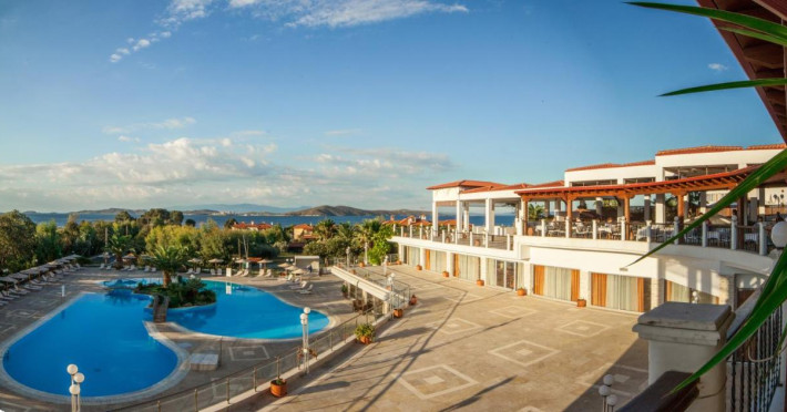 Alexandros Palace se află pe o pantă cu vegetație luxuriantă din zona Tripiti și are plajă privată. Satul Ouranoupolis este la 5 minute de mers cu mașina de complex. Se oferă parcare gratuită.