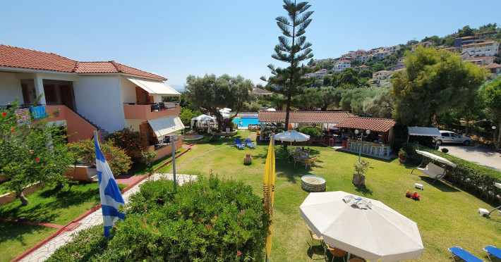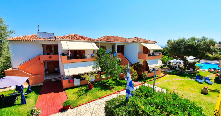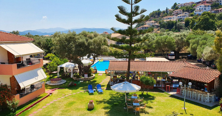 Alexaria Holidays Apartments is situated at an ideal location, in a unique green environment, with a view of Frini village and Faneromeni Monastery. It is just 2km from Lefkada Town and just 600m from the beautiful area of Agios Ioannis (St. John) beach and Gyra. Alexaria Holidays Apartments offers its guests studios, apartments and bungalows that can accommodate 2-5 persons accordingly. All are tastefully decorated and fully equipped. They feature an independent entrance, A/C, kitchen with all necessaries, TV, safe-box and large balconies with a lovely view. Alexaria also features, a reception area, fax service, indoor café-bar-lounge, large garden with lawn, outdoor café-bar, swimming pool with hydro-massage and childrens pool, childrens playgroud, gym place next to the pool, parking area, BBQ, WiFi, Playstation, Ping-pong, foosball, billiards (outdoor), library, laundry service (extra charge) and transfer to/from the airport (extra charge). Small pets are hosted in special areas upon prior request.Datorita dinamicitatii domeniului disponibilitatea ofertelor se modifica de la un moment la altul. De aceea ofertele sunt valabile in limita locurilor disponibile. Agentia nu este responsabila pentru eventualele neconcordante care pot aparea intre informatiile privind tarifele si alte detalii din site si informatiile primite in agentie. In aceste cazuri vor avea prioritate, intotdeauna, informatiile primite in agentie.