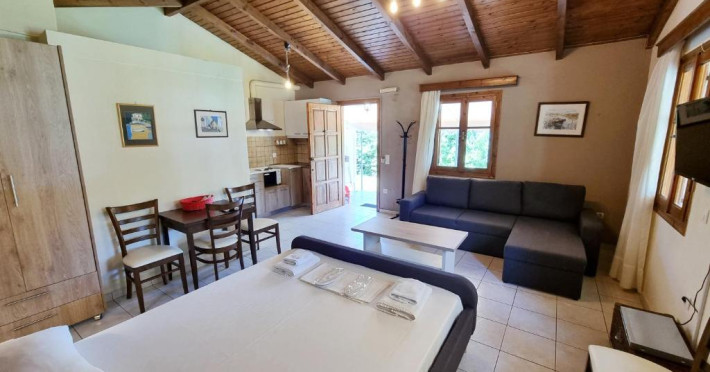Unitățile de cazare de la Alexaria Holidays au tavan cu grinzi, mobilier din lemn și TV cu ecran plat. Fiecare unitate de cazare include o chicinetă bine utilată și baie privată, dotată cu duș.