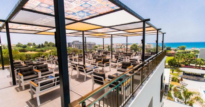 * Terasă Deluxe cu vedere la mare: 31 m² lățime. Pat dublu și canapea/terasa, șezlonguri, halate de baie-papuci, vin și delicii sunt disponibile în ziua de check-in.