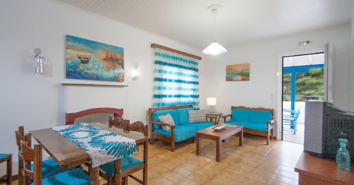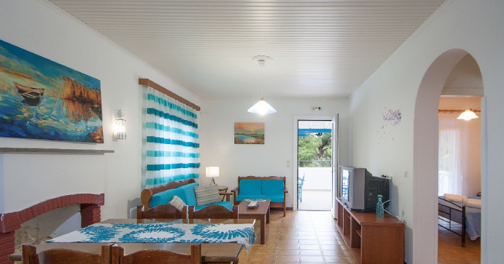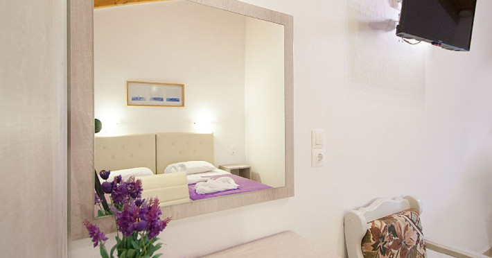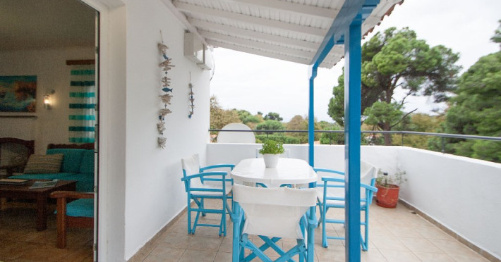 Cea mai apropriata plaja: distanta pana la plaja Koukounaries, poate cea mai frumoasa plaja de pe insula este de aproximativ 400 m, iar accesul se face atat din strada principalala, cat si printr-o intrare secundara, traversandu-se rezervatia naturala Koukounaries, caz in care distanta pana la plaja se micsoreaza considerabil.
