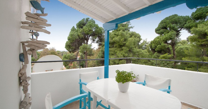 Localizare: vila este situata in zona Koukounaries, intr-o oaza de liniste si verdeata, la 400 metri de plaja cu acelasi nume (accesul la aceasta plaja putand sa se faca si printr-o intrare secundara a rezervatiei naturale Skiathos, caz in care distanta pana la plaja se micsoreaza considerabil), si la 12 kilometri de orasul Skiathos. In zona intalniti la tot pasul taverne, baruri si supermarket-uri. Statia de autobuz se afla la doar 150 de metri distanta.